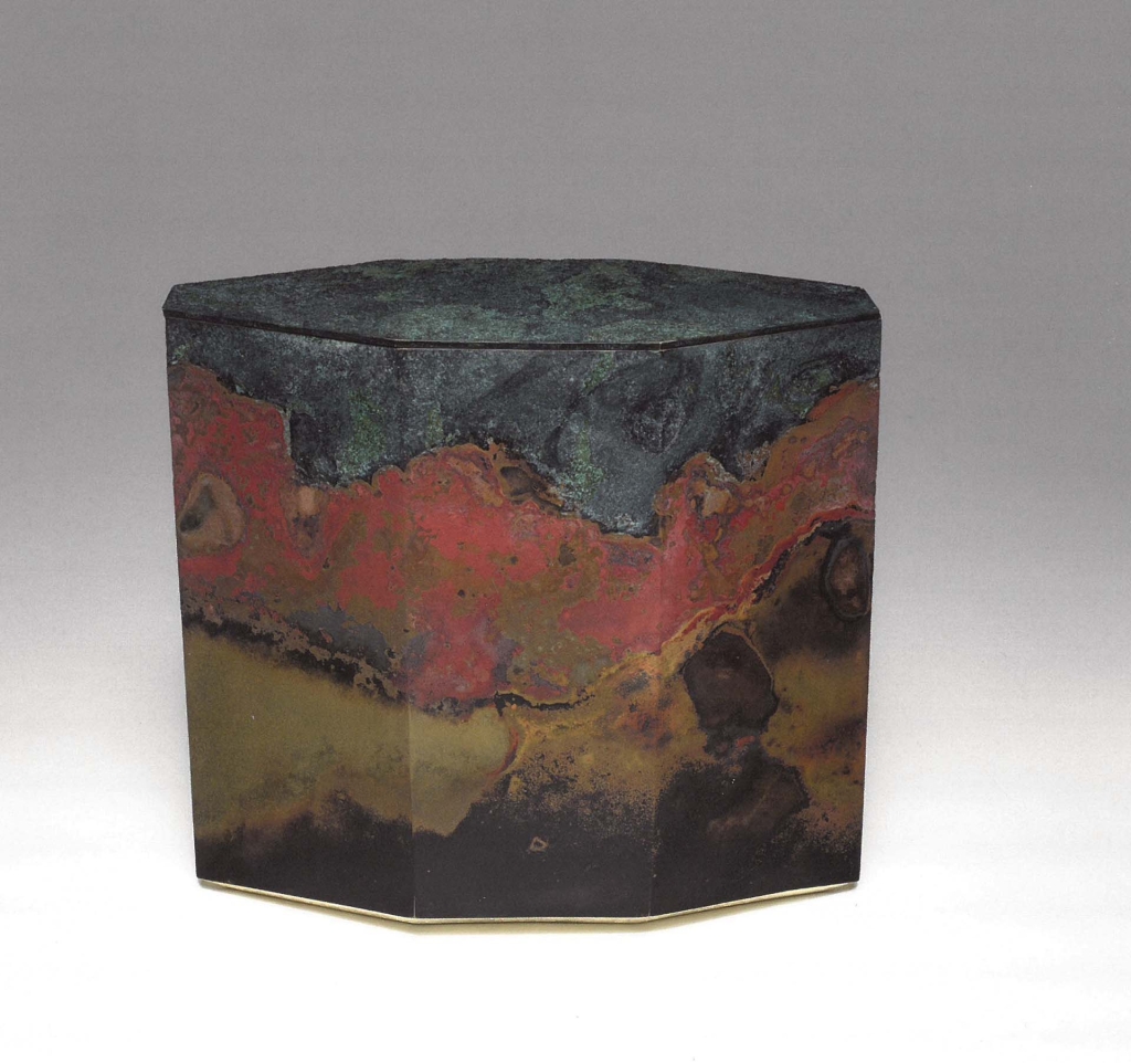 由日本當代藝術家畠山耕治所製作的〈八邊形體〉,是一件當代的實用器和藝術品。藝術家從製模、鑄造,乃至表面銅色皆親自處理。畠山耕治成長於高岡,此地自江戶時代(1603-1868 )早期以來就是日本的金屬鑄造中心,他鑄造各式造型簡約的青銅製品,如茶道用的水指及帶蓋的盒子等。他的作品從當代角度反思青銅的鑄造工藝和色彩,在許多方面都延續了日本青銅鑄造的傳統,體現了一脈相承的美學。