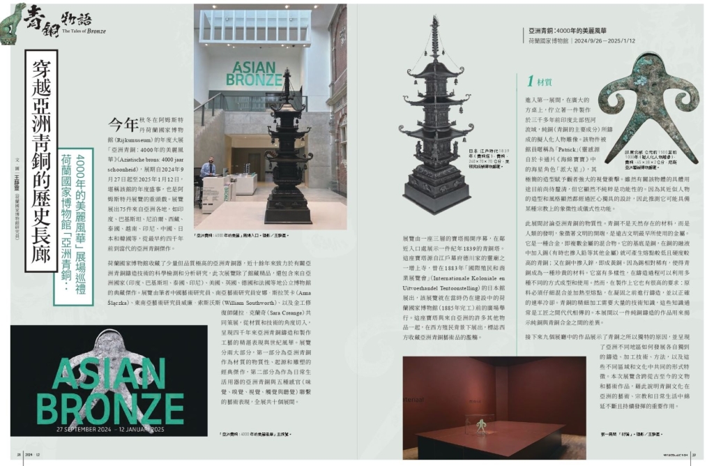 今年秋冬在阿姆斯特丹荷蘭國家博物館(Rijksmuseum)的年度大展「亞洲青銅:4000年的美麗風華」(Aziatische brons: 4000 jaar schoonheid),展期自2024年9月27日起至2025年1月12日,堪稱該館的年度盛事,也是阿姆斯特丹展覽的重頭戲。展覽展出75件來自亞洲各地,如印度、巴基斯坦、尼泊爾、西藏、泰國、越南、印尼、中國、日本和韓國等,從最早約四千年前到當代的亞洲青銅傑作。