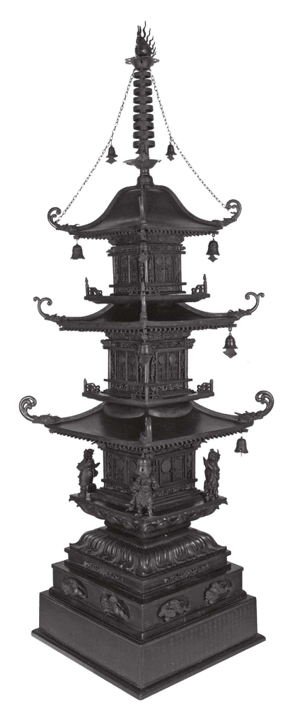 展覽由一座三層的寶塔揭開序幕,在鄰近入口處展示一件紀年1839的青銅塔。這座寶塔源自江戶幕府德川家的靈廟之一增上寺,曾在1883年「國際殖民和商業展覽會」(Internationale Koloniale en Uitvoerhandel Tentoonstelling)的日本館展出,該展覽就在當時仍在建設中的荷蘭國家博物館(1885年完工)前的廣場舉行。這座寶塔與來自亞洲的許多其他物品一起,在西方殖民背景下展出,標誌西方收藏亞洲青銅藝術品的濫觴。