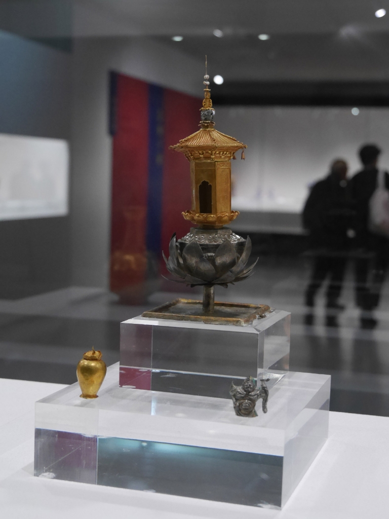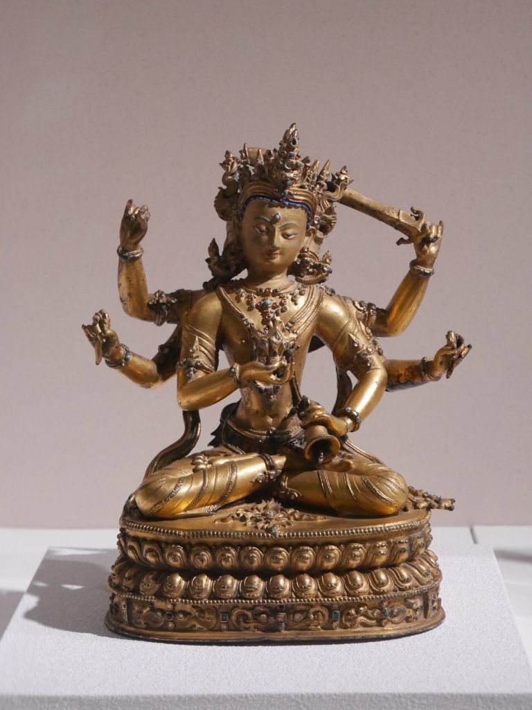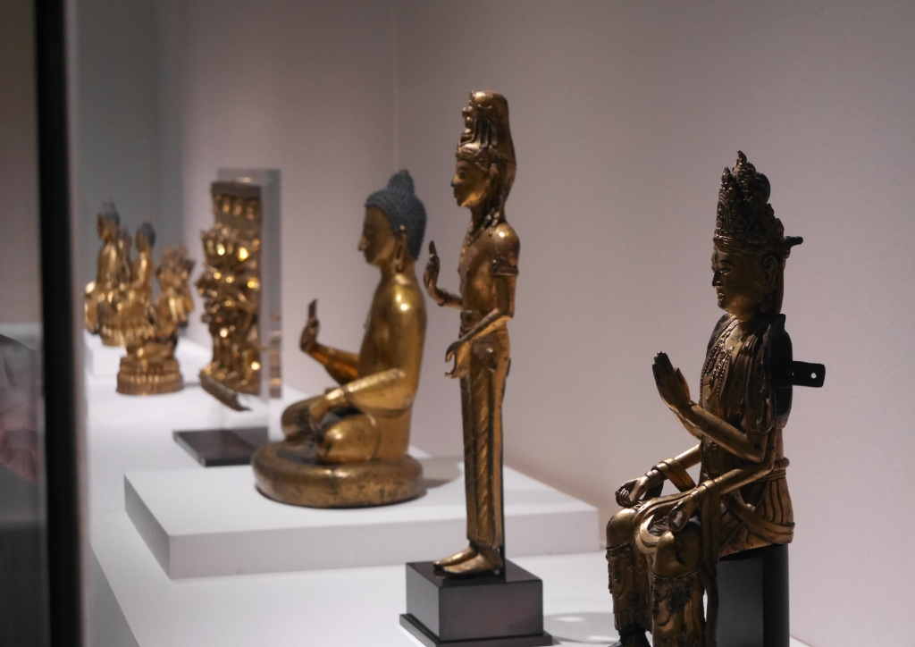 佛教文物除了常見的漢傳佛像,也呈現大理國、西藏等區域之作,時序自唐代至明清,呈現各朝代與地方的特色。其中一件唐代金銀舍利塔,由蓮花、佛塔二部分組成,藏家入手時,佛塔內的金罐裝著細小的舍利子,而蓮花內有小小的天王像,工藝細密,更乘載深厚的信仰意義,值得細細品嚐。