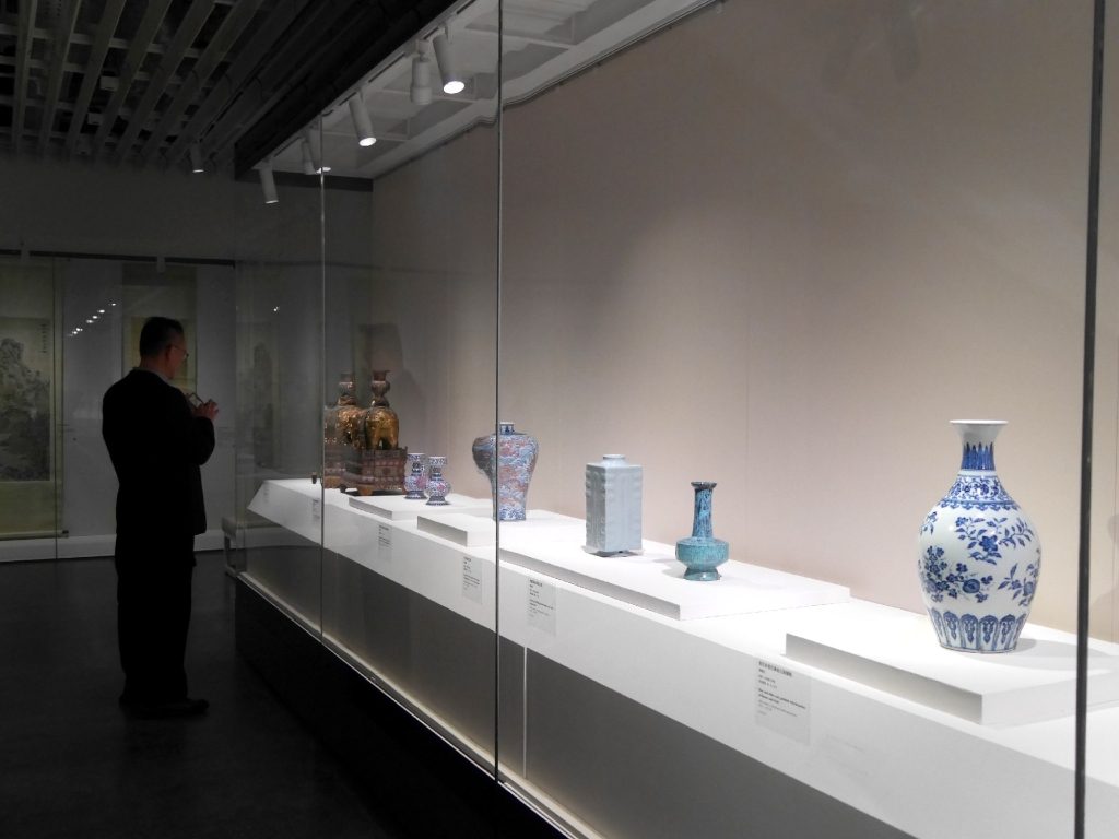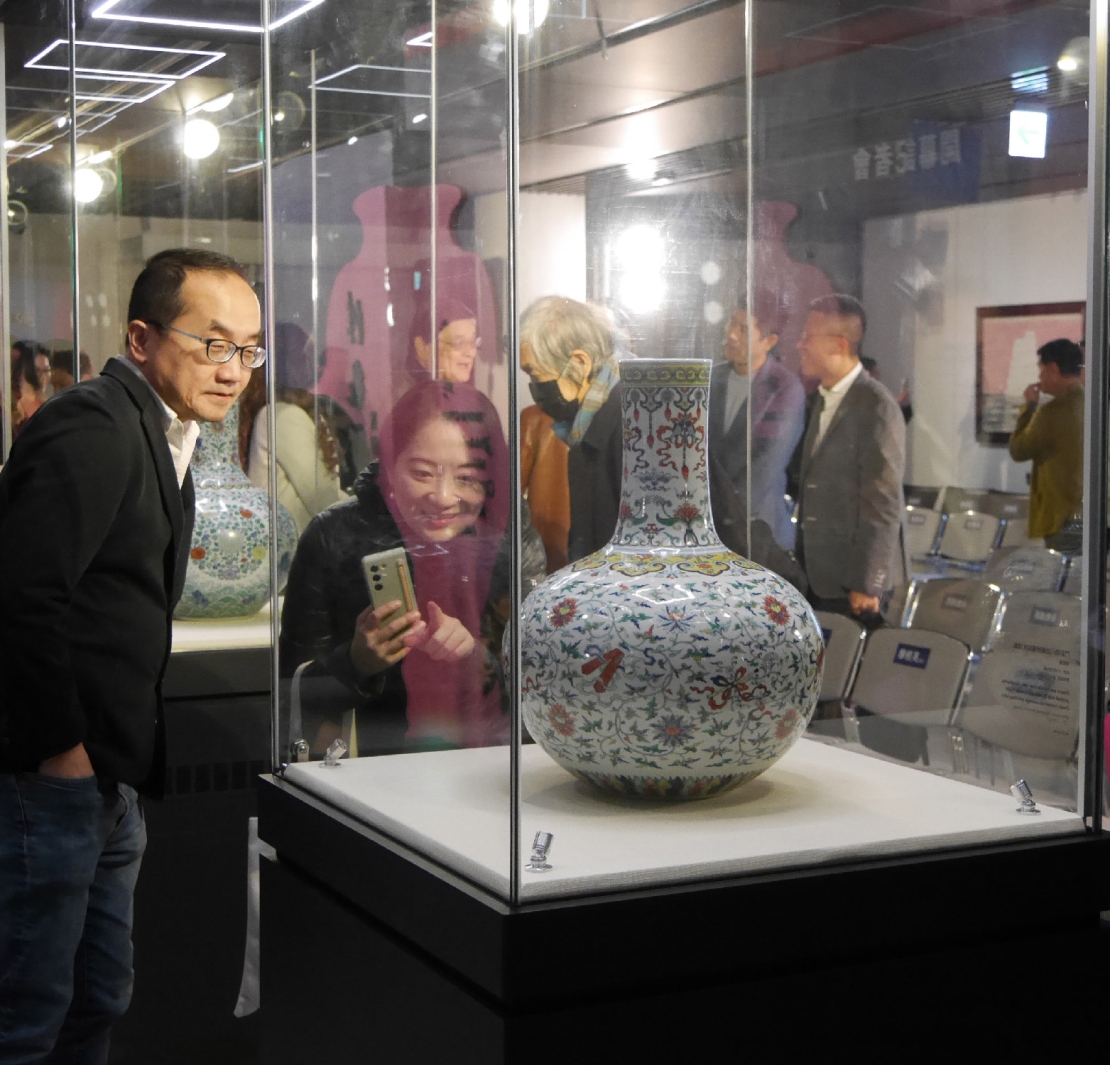 器物類項多元,涵蓋瓷器、佛教文物、漆器及掐絲琺瑯,總件數雖較上次減少,但年代跨度更大、類項更為多元。瓷器選件以官窯為主力,品質極為精良,放諸拍賣市場,有多件皆可作為專場封面拍品,當中更不乏曾轟動一時的拍場明星,如今能夠一次欣賞諸多傑作,極為難得。重磅亮點之一是一樓展場的三件天球瓶,此類大瓶體量碩大,燒製難度高,今存世珍稀,如故宮所藏明代天球瓶極為該館傲人的收藏。清翫以私人收藏的實力,竟可一次推出三件清代天球瓶,恐怕是許多博物館難以望其項背的。