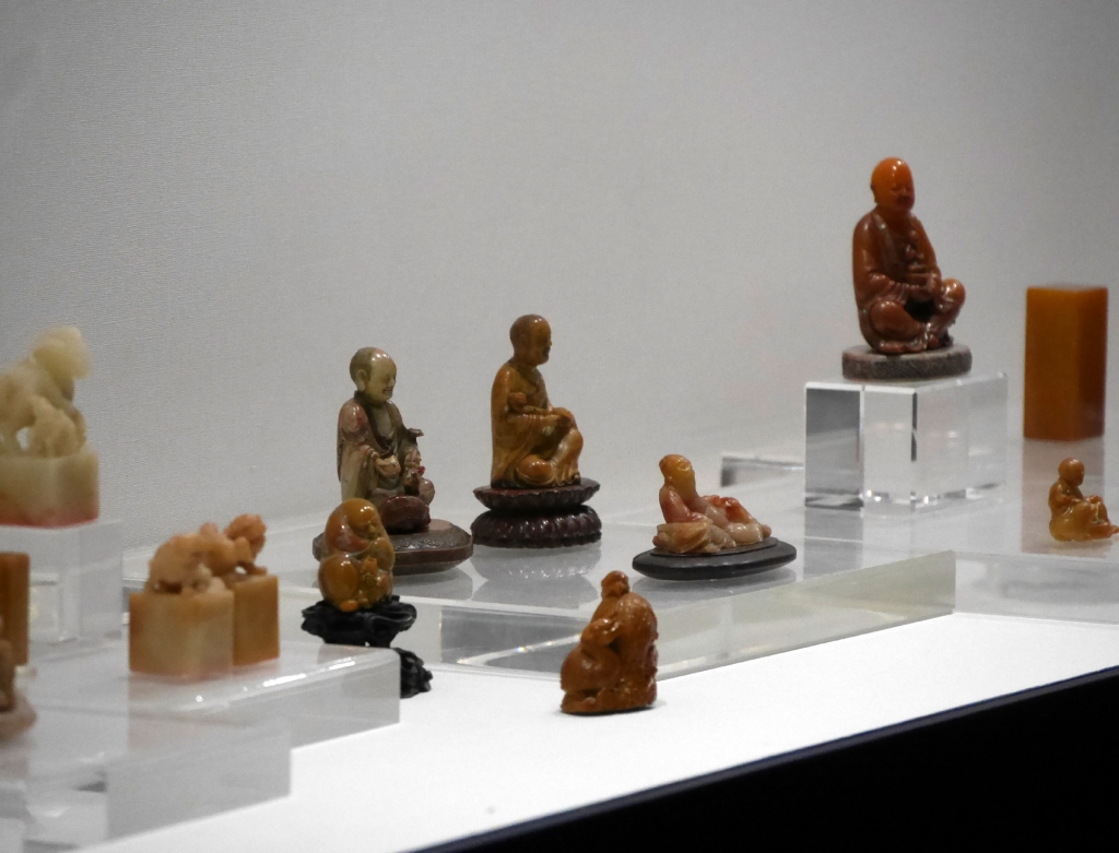 所謂「珍玩」,包含古玉、玉器、印石、竹雕、木刻、文房、銅爐、茶道、家具、巧趣等工藝美術,清翫會員們大多有此類收藏。本次「珍玩」圖錄收錄有284組件,是五大圖錄中文物作品數量最多者,在史博的展出件數也最多。珍玩的欣賞之道,一來可以聚焦於材質本身的美感,如產於福建福州壽山的印石之王「田黃」,田黃多呈黃色,質地純淨,因其珍稀而有「黃金易得田黃難求」一說。其次則是珍玩呈現的工藝之美,如竹雕類作品。竹子質地堅硬,紋路有方向性,下刀時若功力不夠便容易讓竹子開裂,而歷代巧匠卻能在方寸間雕出山林、人物、飛鳥走獸,令人讚嘆。