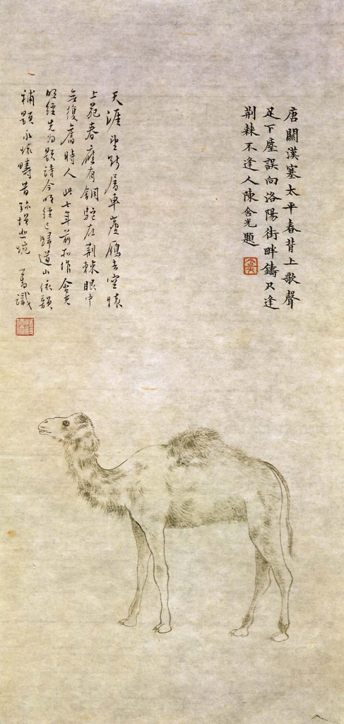 在陳含光這些詩文書畫唱和中,和溥心畬的交誼最顯特別。二人於大陸時期並未相識,乃是赴臺後才於詩會上認識。陳含光渡臺之際,年已七十古稀,序齒長溥心畬十七齡。溥心畬不僅少見地敦請陳含光為其畫作題跋,為其《慈訓纂證》書前作序,更命長子溥孝華拜陳氏為師,皆可見溥心畬的敬重之心。這份敬重,論者多以國立故宮博物院所藏〈駱駝圖〉(圖13)與陳含光的唱和,論證溥、陳二人追念前清故國的遺民情懷。