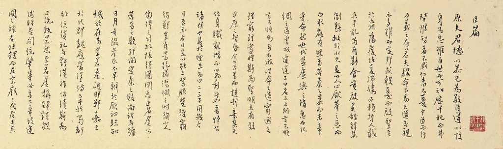 如前述,陳含光與忠貞前朝、敵視民國的清遺民,其實二者有別。溥心畬雖為不食周粟的舊王孫,然而亦非敵視民國的那群清遺民。如1932年,日本於東北扶植溥儀成立滿州國,滿清遺老親貴前往投靠者絡繹於途,連溥心畬之弟溥僡,亦屬其中一員。然而深居恭王府的溥心畬,卻作〈臣篇〉(圖14)以表心,並厲言:「未有九廟不立、宗社不續、祭其非鬼、奉其非朔,而可以為君者也」。