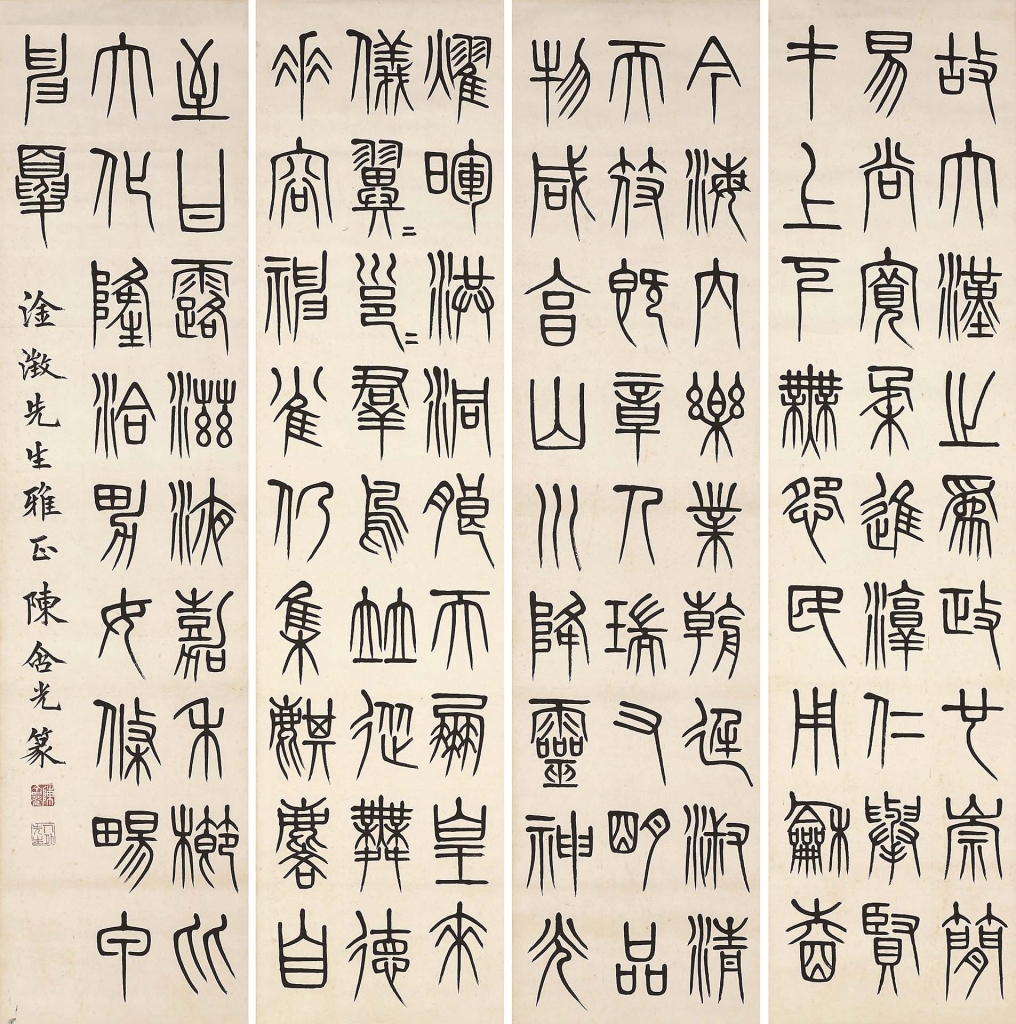 無論如何,溥心畬書此二件篆書作品時,陳含光已逝世數年。或許出自對知交的懷念,才有此追擬故友書風之作。