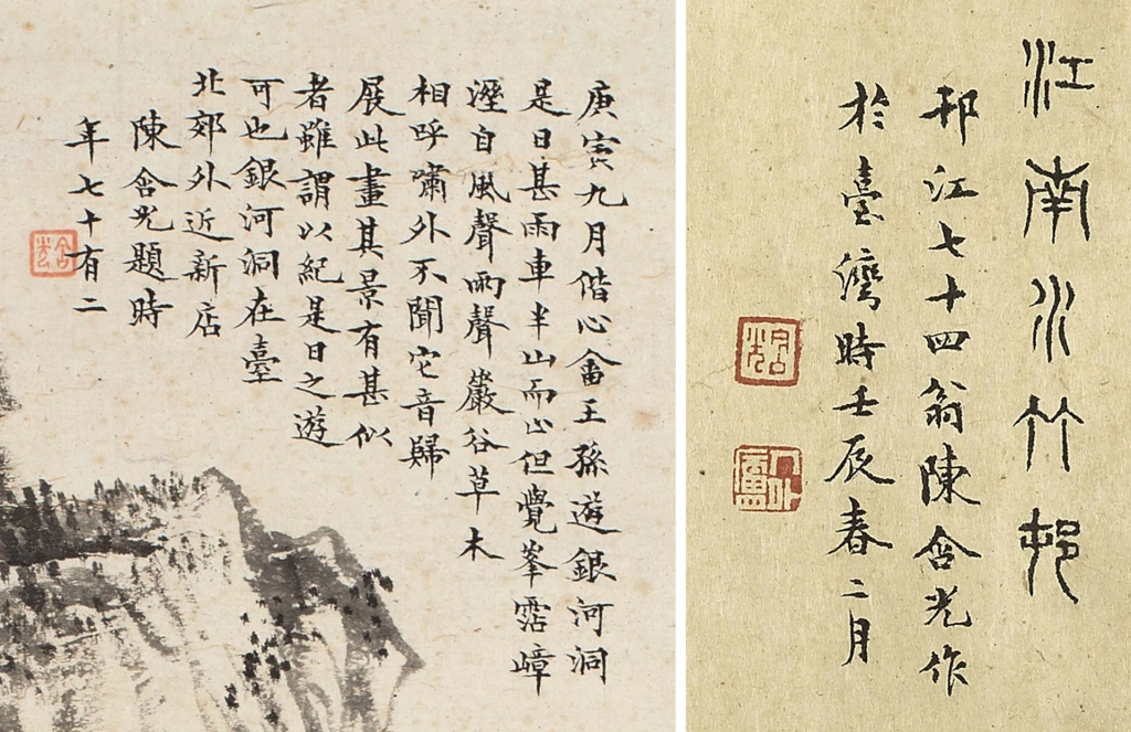 如果細細檢視陳含光與溥心畬在民國代清而後的出處選擇,其實十分相似。溥為王孫,陳為傳臚世家;異代之後,溥選擇深居西山與恭王府,並未參與清遺民的復辟與滿州國;陳雖有前清功名,然「剪辮改裝」,自絕於清史館那批清遺民之外,詩文徜徉於揚州。對日抗戰時,二人都堅拒日本攏絡。以至於國共內戰之時,都選擇了國民政府下的臺灣。