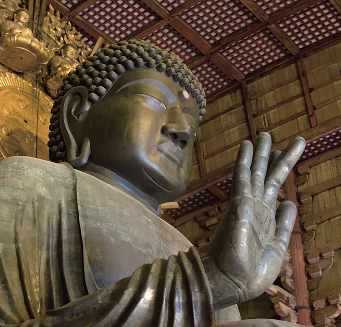 奈良的世界文化遺產之一,佛教華嚴宗大本山。東大寺始於神龜五年(728)建立的金鍾山寺,為聖武天皇(701-756)早逝的皇太子祈禱冥福所建。東大寺的基本寺院架構於8世紀中底定,大佛殿中的盧舍那大佛亦為彼時所建。東大寺的國寶金堂——大佛殿曾兩度遭遇祝融之災,現存的建築於1707年竣工,正面寬57公尺,深50.5公尺,高度約48.7公尺,至今仍是世界上最大的木結構建築。