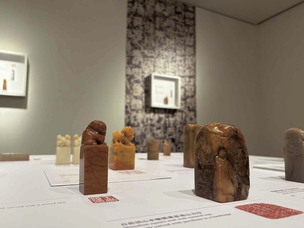 明代文彭以青田石刻印,使軟石印材普及,而後,福建福州旁的「壽山石」、與浙江臨安縣的「昌化石」、青田縣「青田石」為印石三大重要區域。本次展覽即聚焦於福建壽山石中的「田黃」、「芙蓉石」,及數量相對較少的昌化雞血石和浙江青田石。
