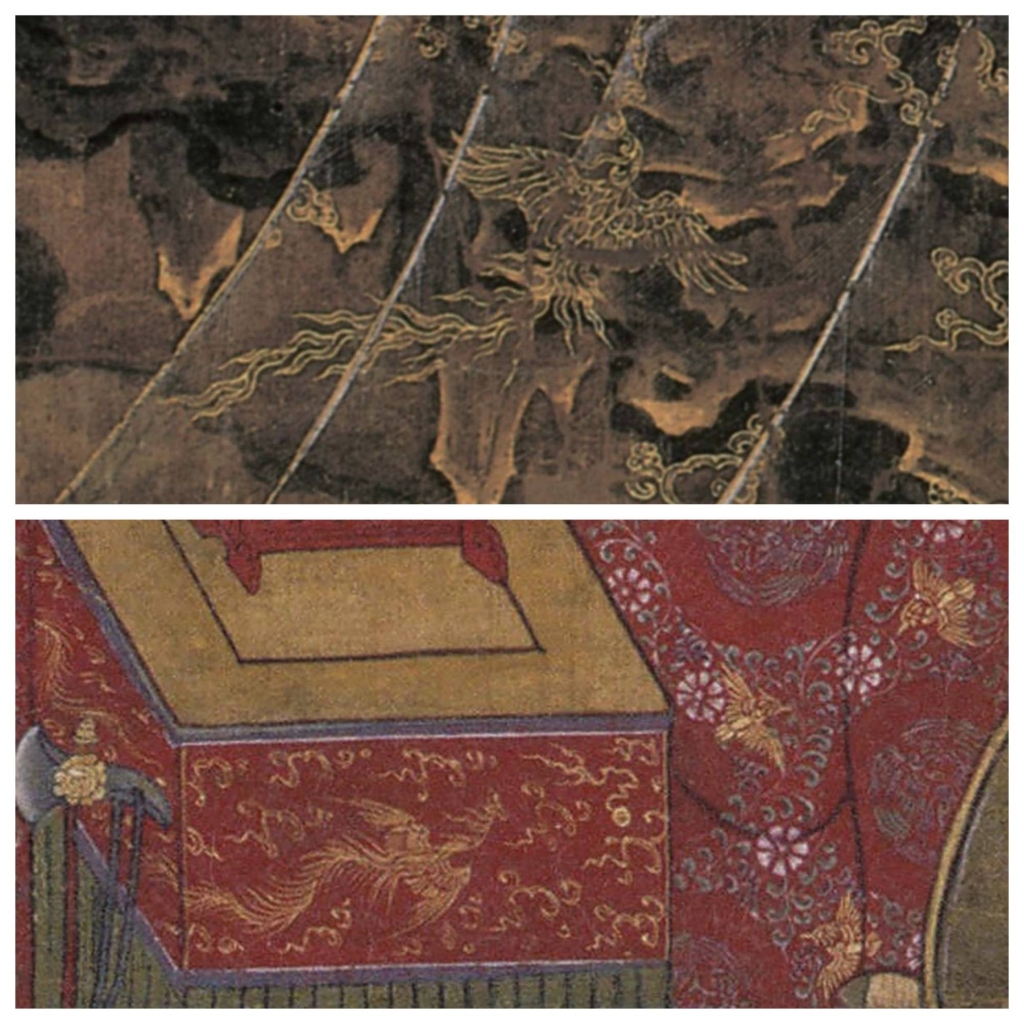 十王圖歷代相關作品中最常被討論的是宋元時期陸信忠、金大受等寧波佛畫系統十王圖,近年受到關注的海外傳世作品,則是現藏東京靜嘉堂文庫美術館的《十王圖.二使者圖》12幅(圖2,以下簡稱靜嘉堂本)。該套畫作起初曾被判為南宋寧波作品,學者研究陸續提出其應為13至14世紀間的高麗宮廷、或14至15世紀與朝鮮時期風格有關的佛畫。畫中以泥金與鮮豔礦物顏料細繪十殿閻王、使者與亡魂,不僅每王皆有獨立構圖,畫面更可見大量瓔珞、鳳凰紋、格子窗與象嵌器物細節,顯示其非單純教化畫,可能為較高社會階級供奉的宗教藝術品。