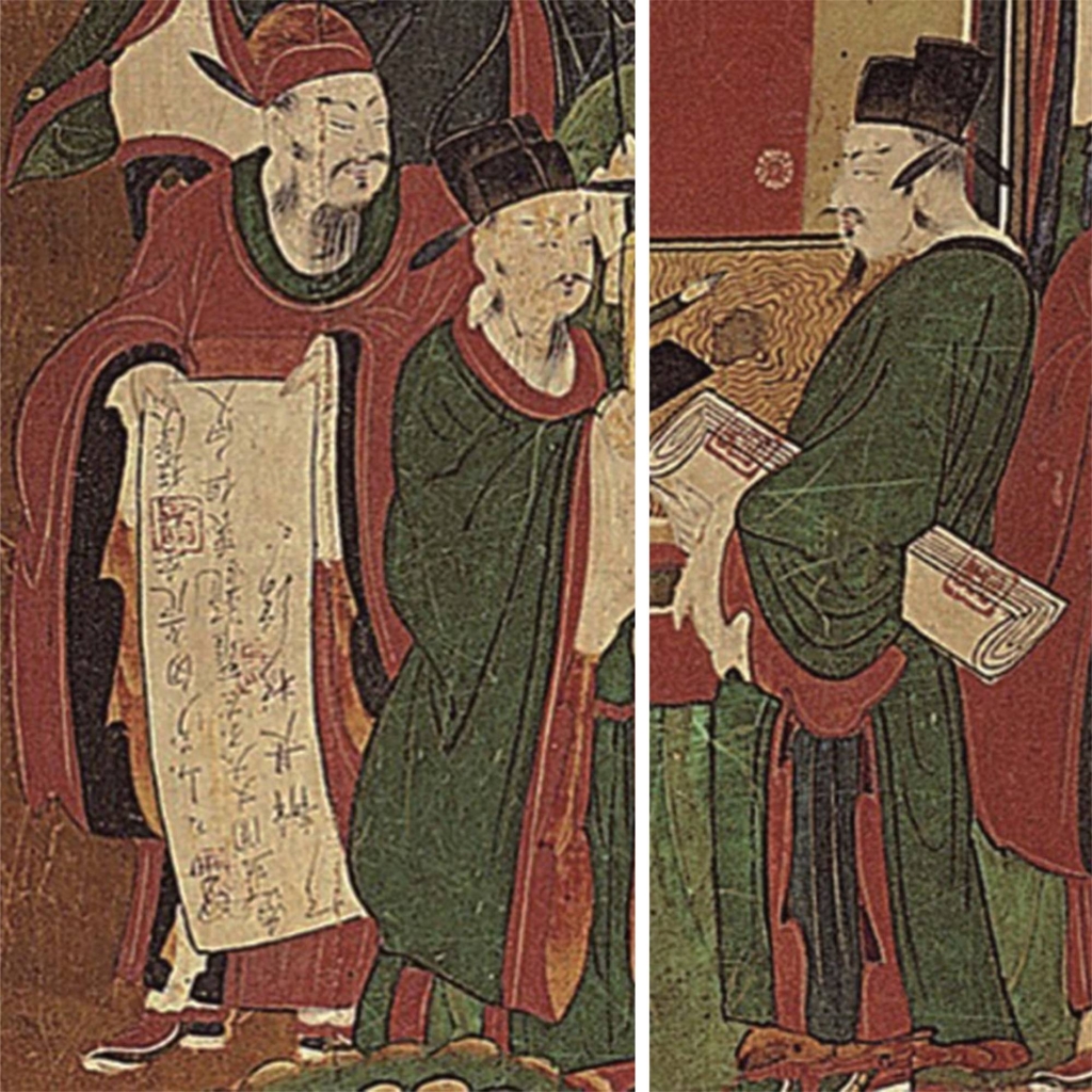 (下)《十王圖.二使者圖.第一秦廣王》局部,靜嘉堂文庫美術館藏。