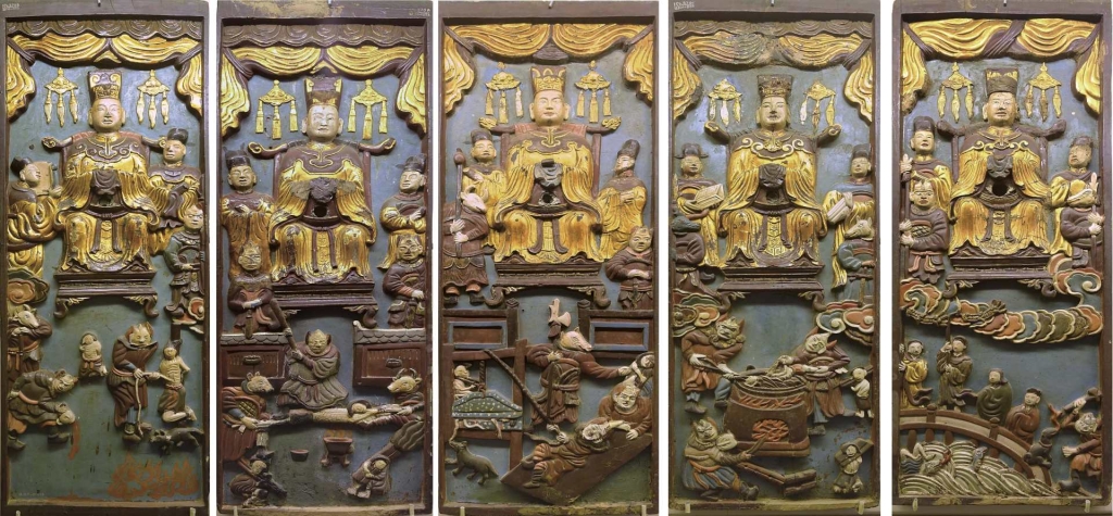 越南國家歷史博物館目前典藏三套十王圖相關作品,年代跨越約17世紀至20世紀初,涵蓋了木製浮雕與紙本繪畫媒材,呈現出地獄圖像在越南文化語境中的多重變奏。
