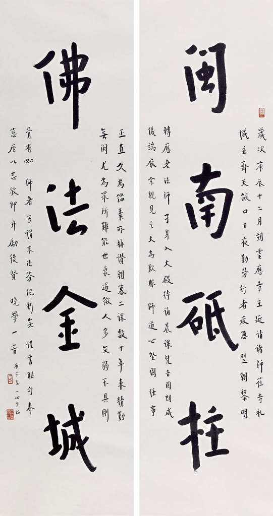 「以翰墨為佛事」(北宋惠洪大師語),是歷代僧眾必修法門。藉著在日常生活中書寫經文法語,僧人可以默誦佛典,安頓身心。高僧寫偈語,弟子每日對看書蹟,具有開示傳法的功效。一般俗家弟子若能求得師父墨寶懸掛於家中,可獲得安定身心的法益,沐於長足的祥和與法喜。