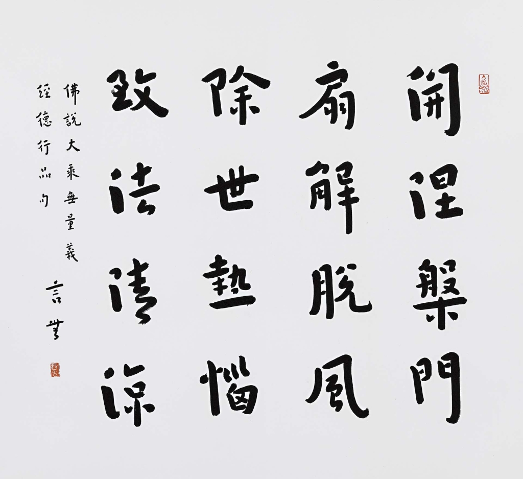 在這個競爭激烈、人心浮動的時代,人們需要一劑清涼藥方來舒緩焦慮與火氣。希望在一心師的弘體書法展中,透過書者緩和的運筆,觀者藉著誦讀文字,遙想弘一大師的生命歷程,體驗弘體書法在毫端動靜間的呼吸,或許正是抒壓解憂的一帖良方。