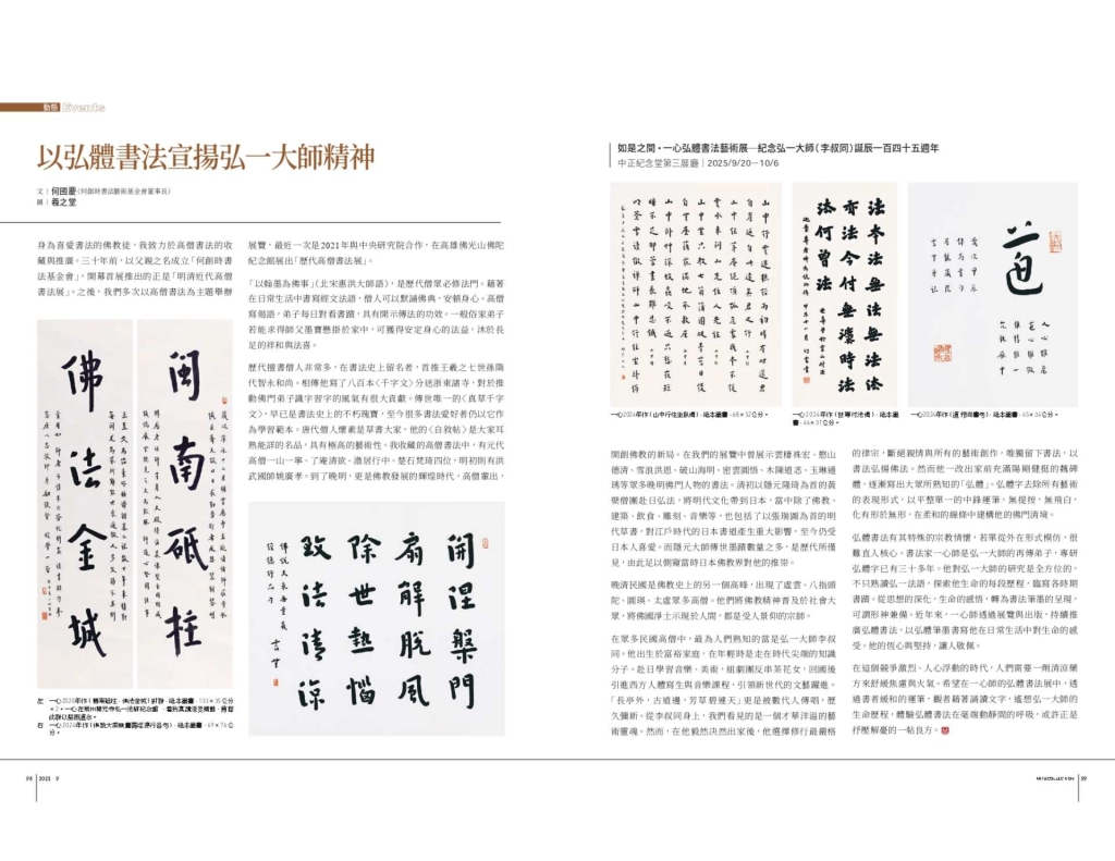 原文載於《典藏.古美術》396期〈以弘體書法宣揚弘一大師精神〉,作者:何國慶(何創時書法藝術基金會董事長)。