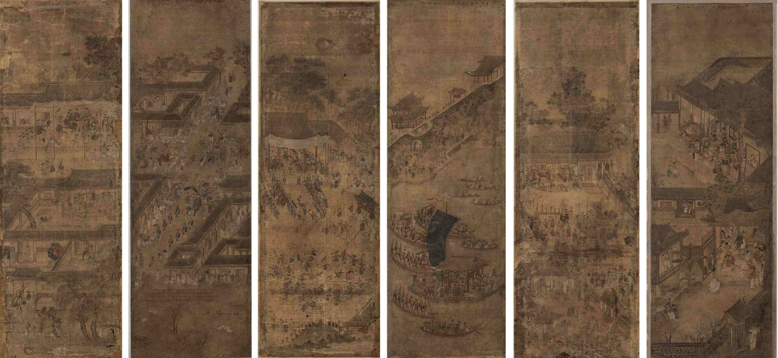 19世紀〈士人風俗圖〉(北一營圖、南小營圖、洗劍亭圖),紙本水墨設色,各35×45.1公分。