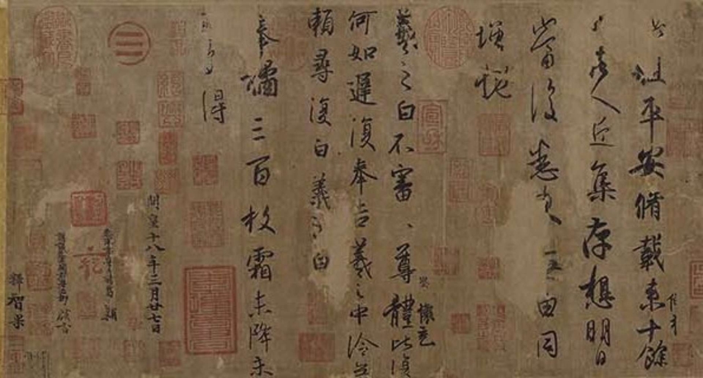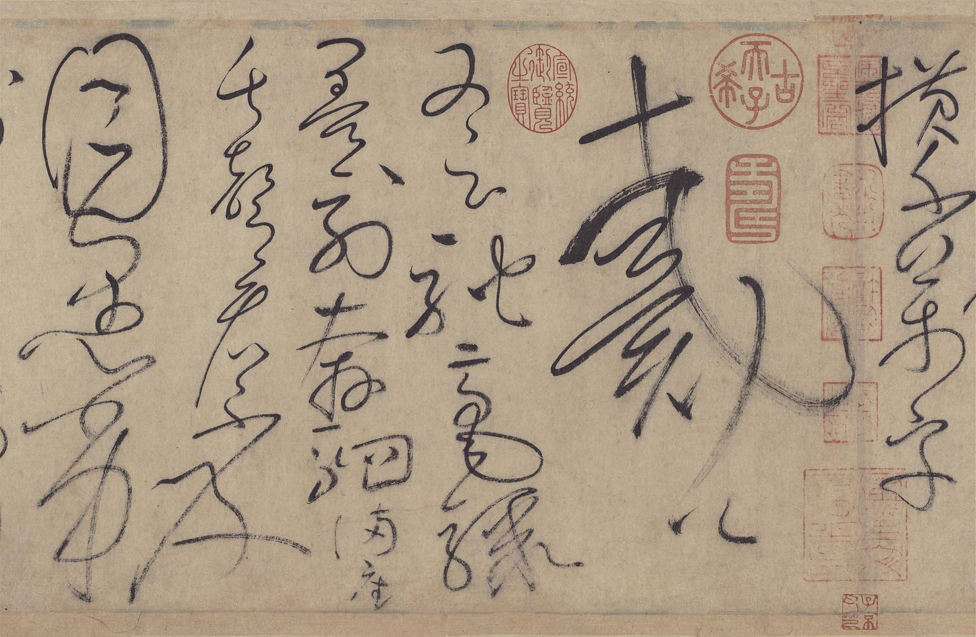 曾引發當今學界論戰的懷素(約活動於8世紀後半)〈自敘帖〉,亦是買家競逐的搶手名品。〈自敘帖〉長卷為唐代狂草藝術的代表作,全卷展現即興而就、一氣呵成的筆勢,輕快流轉的細筆勁字隨情緒高漲逐漸奔狂,卷末的飛白大字掀起高潮。文徵明曾據陳湖陸氏所藏〈自敘帖〉鉤摹一本,由名手章簡甫刻石,為〈水鏡堂帖〉,今仍有多件翻刻本存世;後來陸藏〈自敘帖〉落入嚴嵩之手,嚴嵩倒臺後此本輾轉由朱希孝所得。據董其昌(1555-1636)《畫禪室隨筆》所記,朱以600金將〈自敘帖〉賣予項元汴,爾後項元汴跋記此件「其值千金」。