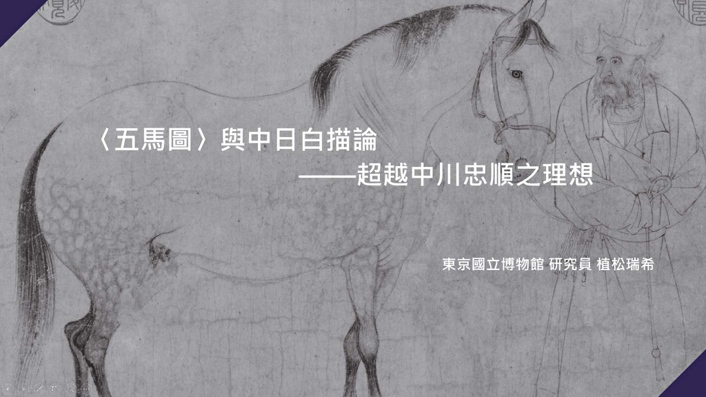 第二場講座由東京國立博物館研究員植松瑞希以「〈五馬圖〉與中日白描論─超越中川忠順之理想」為題,講述在〈五馬圖〉消失於公眾眼前的逾80年裡,人們理解此畫的主流觀點,實為因時代背景、圖版限制等因素所形成的誤解。此觀點源自一位關鍵的歷史學者中川忠順,他認為此畫為專以線描呈現的「理想白描」。如今〈五馬圖〉重新問世,人們發現此畫與中川所述不盡相同,但李公麟在畫裡融合白描與其他技法的表現方式,卻正顯示了他靈活運用白描的高超功力與巧思。