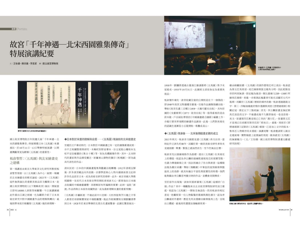 國立故宮博物院百年院慶大展「千年神遇─北宋西園雅集傳奇」特展精選日本〈五馬圖〉來臺展出,於10月11日、12日舉辦特展演講,以期臺灣觀眾更為瞭解〈五馬圖〉的重要性。
