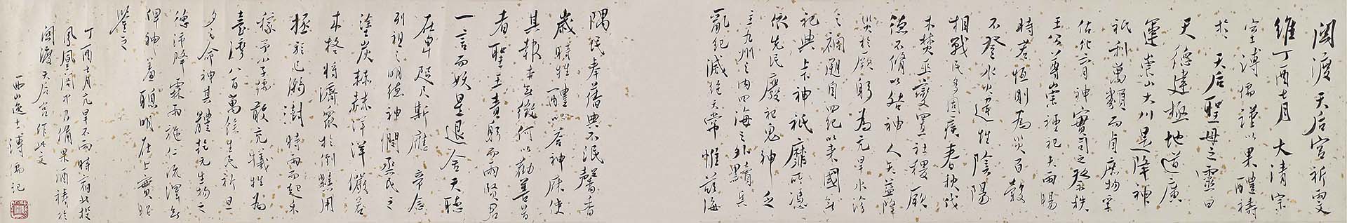 讓我們將目光放回一甲子前的臺灣。1949年渡海來臺的溥心畬,逐漸習慣此地的風土民情,並行走多處。丁酉年(1957),他寫了一篇〈關渡天后宮祈雨文〉(圖1):
