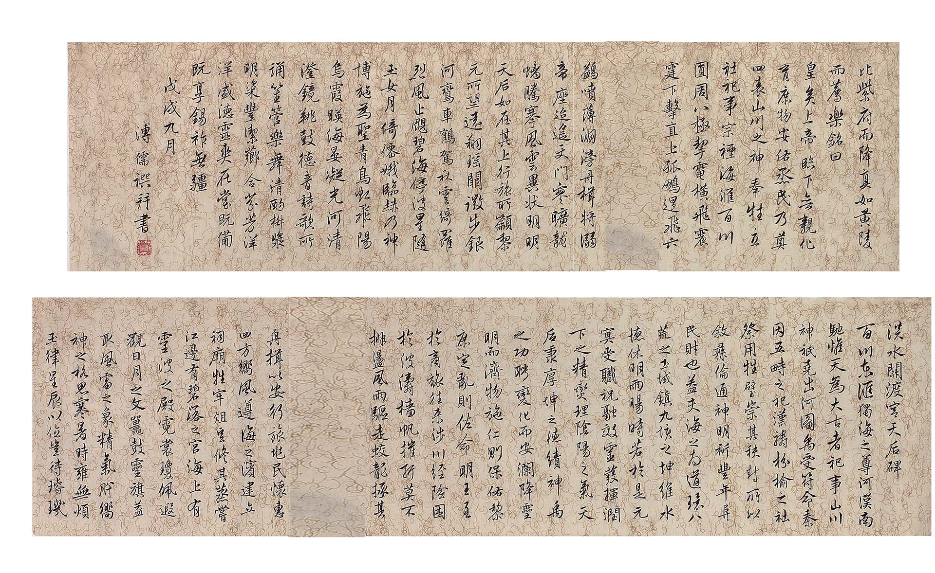 或因心存善念,此番祈雨有成。為答神恩,溥心畬次年(1958)為天后宮寫了另一份碑記〈淡水關渡宮天后碑〉(圖2):