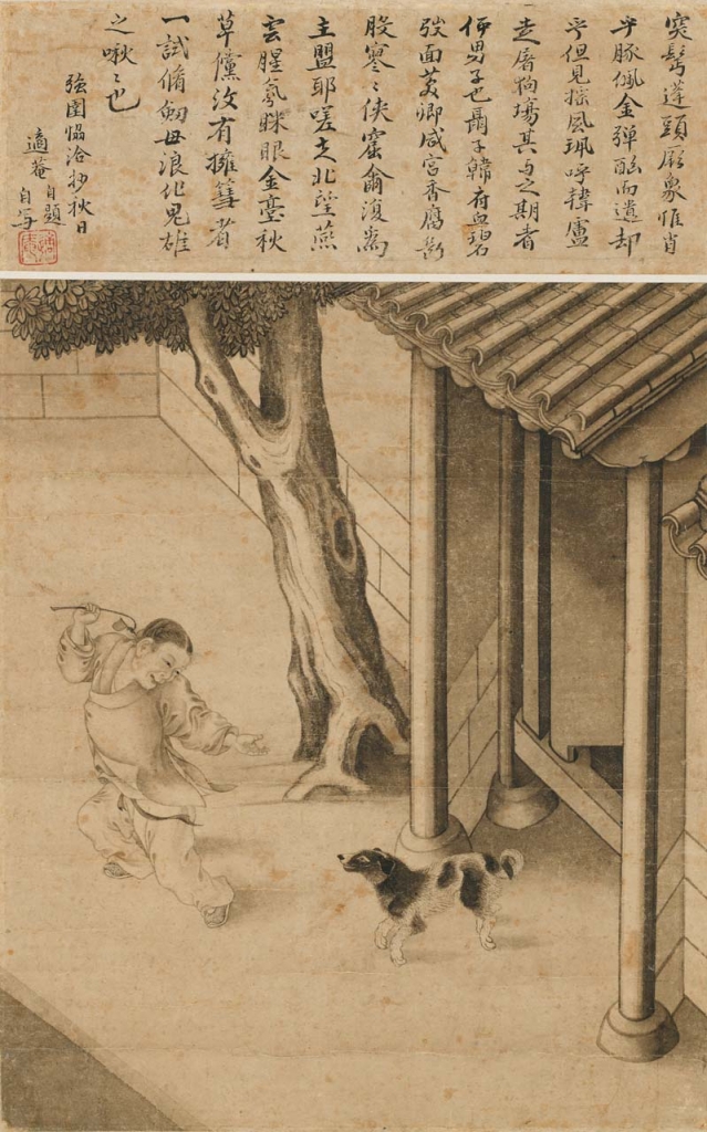 圖18 19世紀 申光絢〈招狗圖〉,紙本設色,35.3×29.5公分,韓國國立中央博物館藏。(圖/徐胤晶)