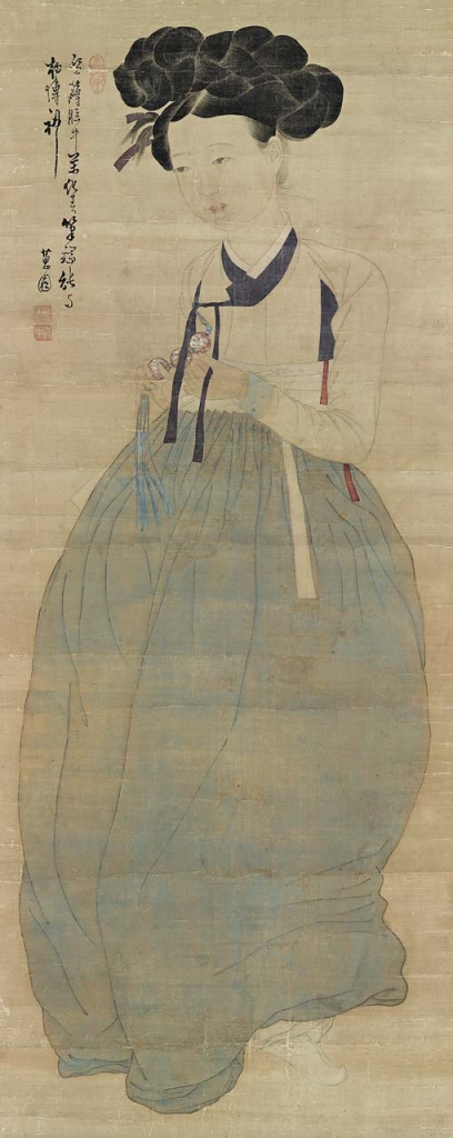 圖14 申潤福〈美人圖軸〉,絹本設色,114×45.5公分,韓國澗松美術館藏。(圖/徐胤晶)