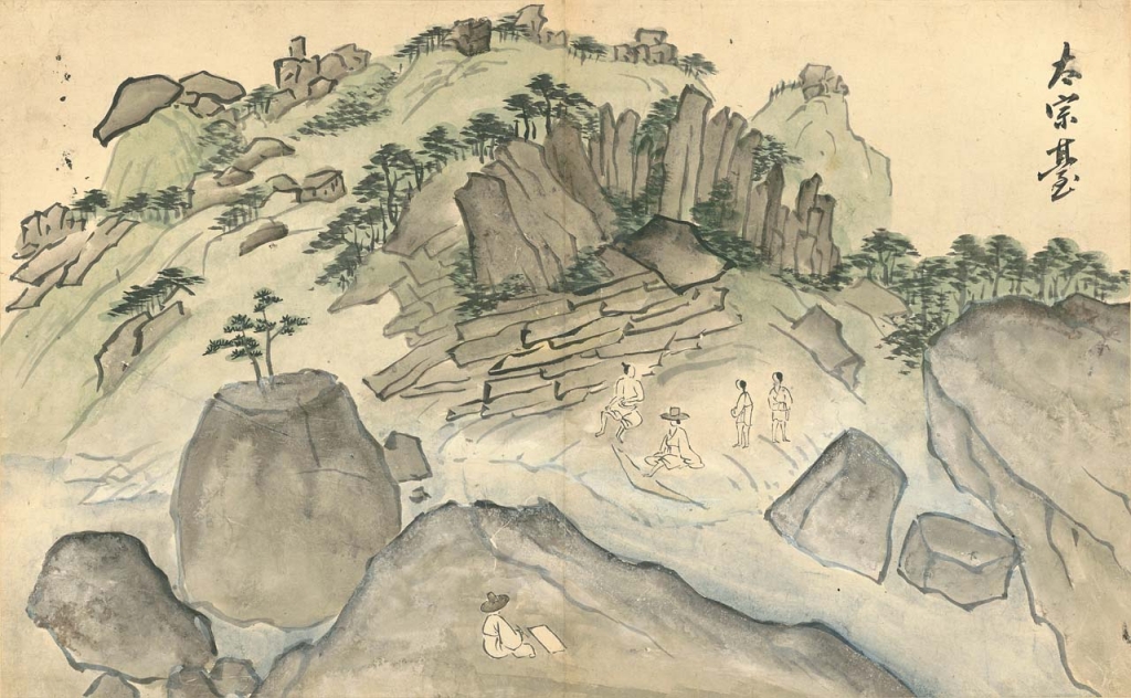 另一位著名的畫家金弘道(約生於1745後—1806)也與先前介紹的鄭敾,共同形塑了18世紀以圖繪金剛山為母題的繪畫傳統。1788年,因為朝鮮國王無法出宮,金弘道奉皇室之命前往圖繪金剛山的景象。現今仍存有此次金弘道前往金剛山途中,沿途為了繪製金剛山所製作的草圖(圖15)。金弘道成功地利用細膩的筆法表現金剛山的地貌與周遭的環境。與鄭敾所繪的〈金剛全圖〉相較之下,金弘道所繪的金剛山有別於鄭敾以鳥瞰呈現的視角,他利用較為平視的手法呈現金剛山的景色,而金弘道大膽地利用西方的明暗法和大氣近遠法表現了「真景」之感。18世紀,描繪「真景山水」新趨勢的形成,與當時的經濟和文化發展密切相關,而為了描繪「真景」的實地踏訪,也促成朝鮮文人對於旅行與藝術社交活動的興趣。然而,「真景山水」隨著19世紀朝鮮人對於中國經典興趣的復興後,遂逐漸失去其熱度。18世紀的朝鮮,則成為「真景山水」最後盛行的年代。