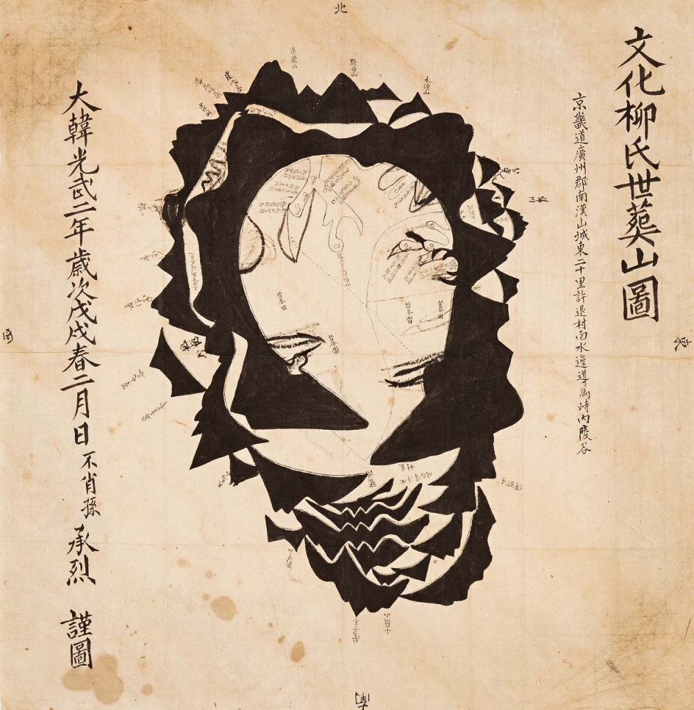 第一群描繪有地產之作品,其製作目的在於以圖繪的方式作為這些地產存在的視覺證據,以及作為地產所有權的展現。這類作品尤其集中出現於17世紀,於壬辰倭亂(1592-1598)後的重建時期,戰後氏族開始委託畫家製作此般地產圖像,藉此重新主張其別墅或者墓園等的土地產權。〈文化柳氏先塋圖〉(圖16)不僅表現了柳氏家族祖墳的位置,還表現了其附屬的墓田。藉由家族土地的繼承關係,保障了管理墓地的經費,以及每年舉辦祖先祭祀的經濟來源。嚴格地說,像這類的繪畫作品,並不應該被視為是觀眾以純粹欣賞的眼光看待的藝術品,反而比較像是地圖,或是顯現地主擁有這些地產之產權的視覺文件。