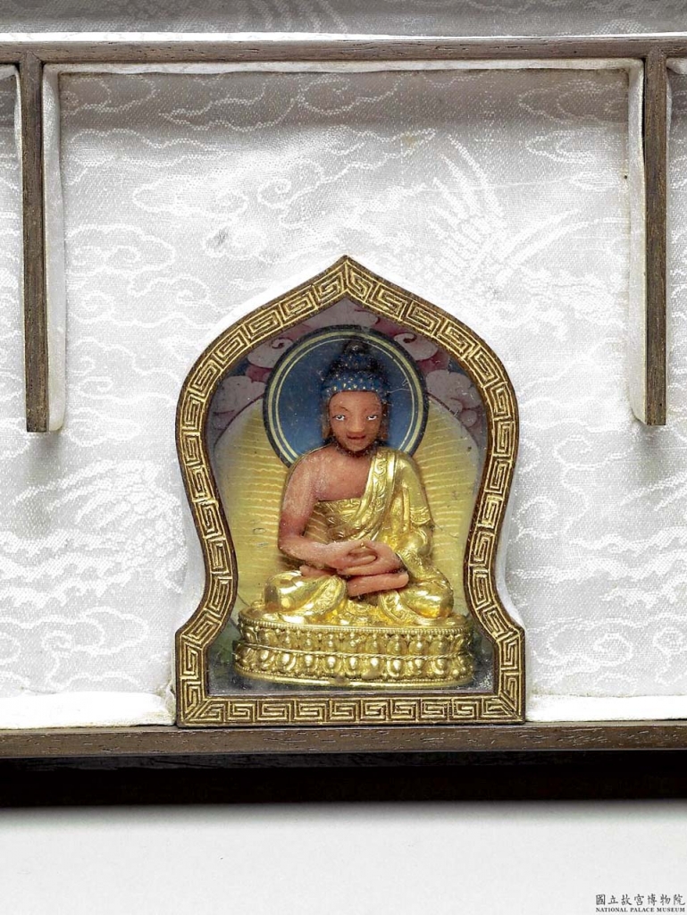 右:圖10 清乾隆三十六年(1771)〈金無量壽佛〉,中國南方作品,佛像高10.8公分、寬8.5公分;座高23.5公分,國立故宮博物院藏。(圖/國立故宮博物院)