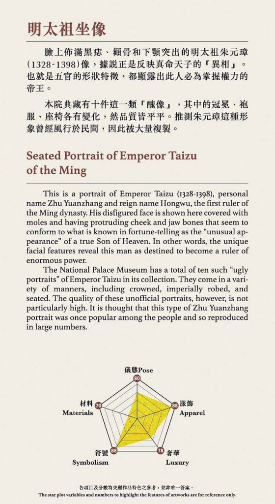 不過,展件中的〈明太祖半身像〉,與民間製作的太祖「醜像」(圖18)一開展便引發熱議:「究竟哪一種畫像,才是朱元璋真正的長相?」這個問題可以擴大來問:「這次展出的所有帝后像,都忠實反映了帝后真正的相貌嗎?」