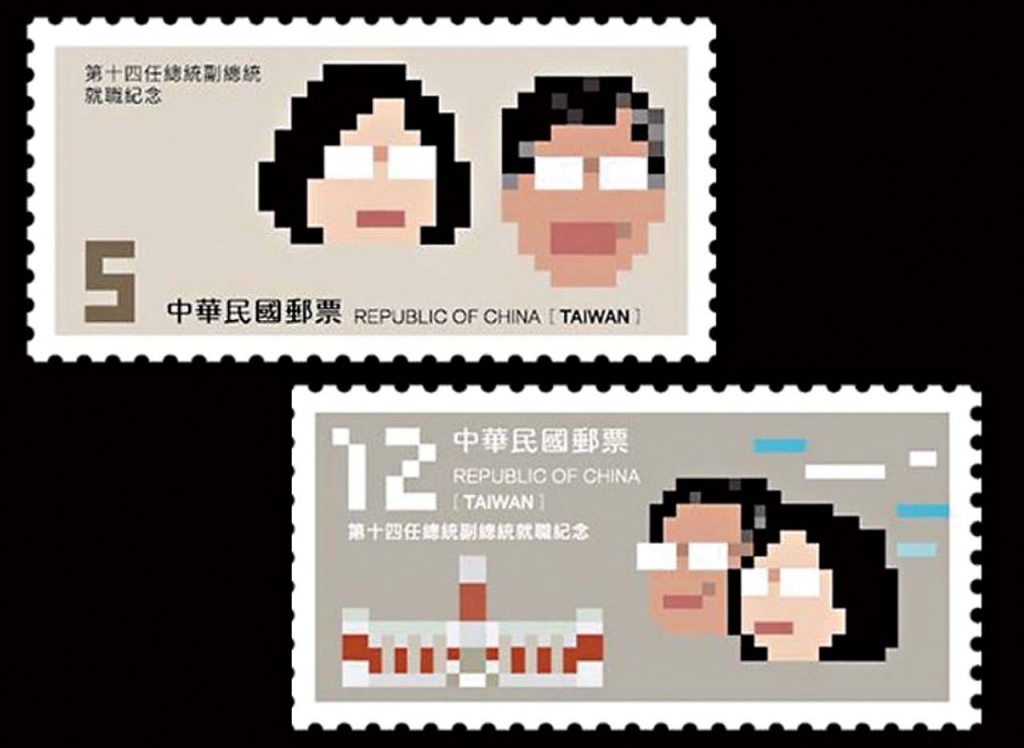 以第14屆蔡英文總統就職典禮發行的紀念郵票,與「權力的形狀」特展出現的帝后像作對照也十分有趣。這套郵票的設計者聶永真「數位像素」式地模糊了總統、副總統的面容。如果不瞭解這套郵票是為了總統就職發行,恐怕只會覺得這是一對戴著眼鏡的女士與先生,或許在宣導視力保健的重要。然而這正是屬於當代的「權力的形狀」—由於當代權力源自一般民眾,國家領導人的形象與被認為擁有權力的一般民眾疊合在一起。這絕不是過去宮廷畫家能夠想像的時代氛圍。