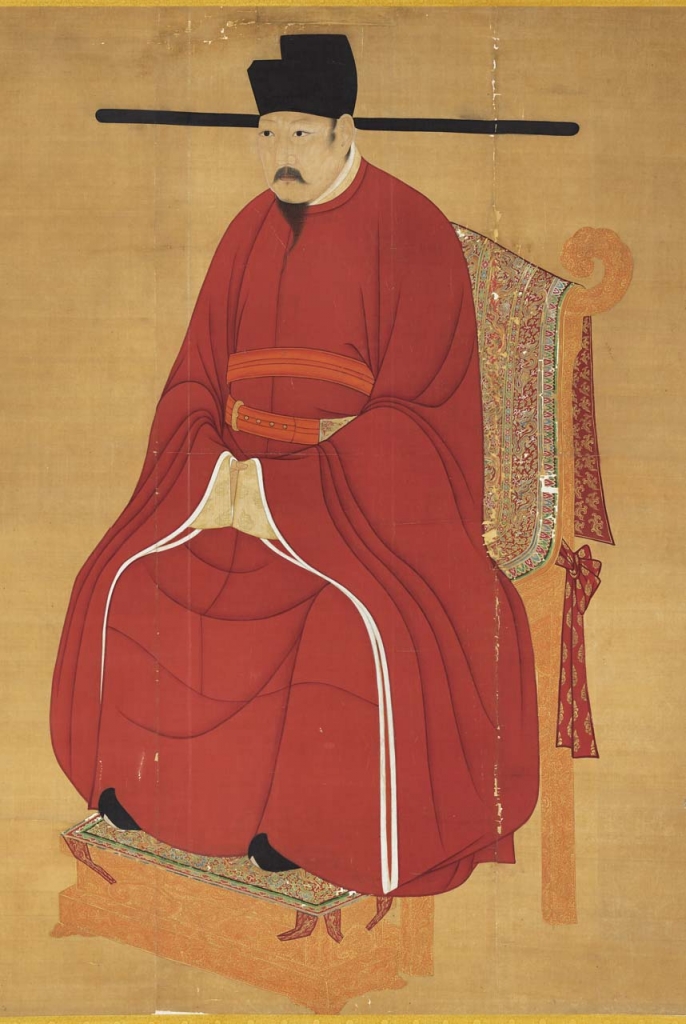 明代帝后像作品最豐富,特別是這次展出的四幅坐像,簡要勾勒出明代皇帝坐像演變的四階段,可感受到越來越「踵事增華」,朝繁複裝飾與符號化發展的傾向。