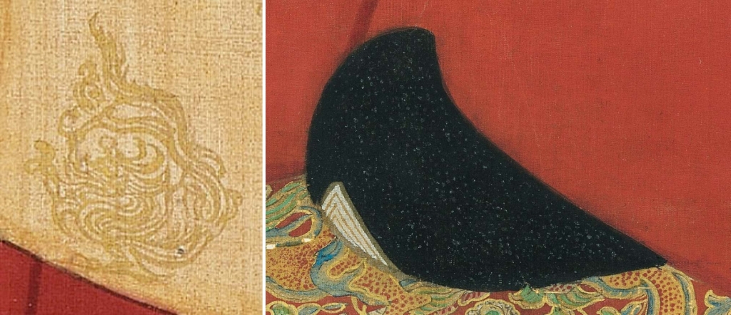 右:圖14 〈宋仁宗坐像〉局部:宋仁宗黑靴面上的點狀裝飾。(圖/國立故宮博物院)