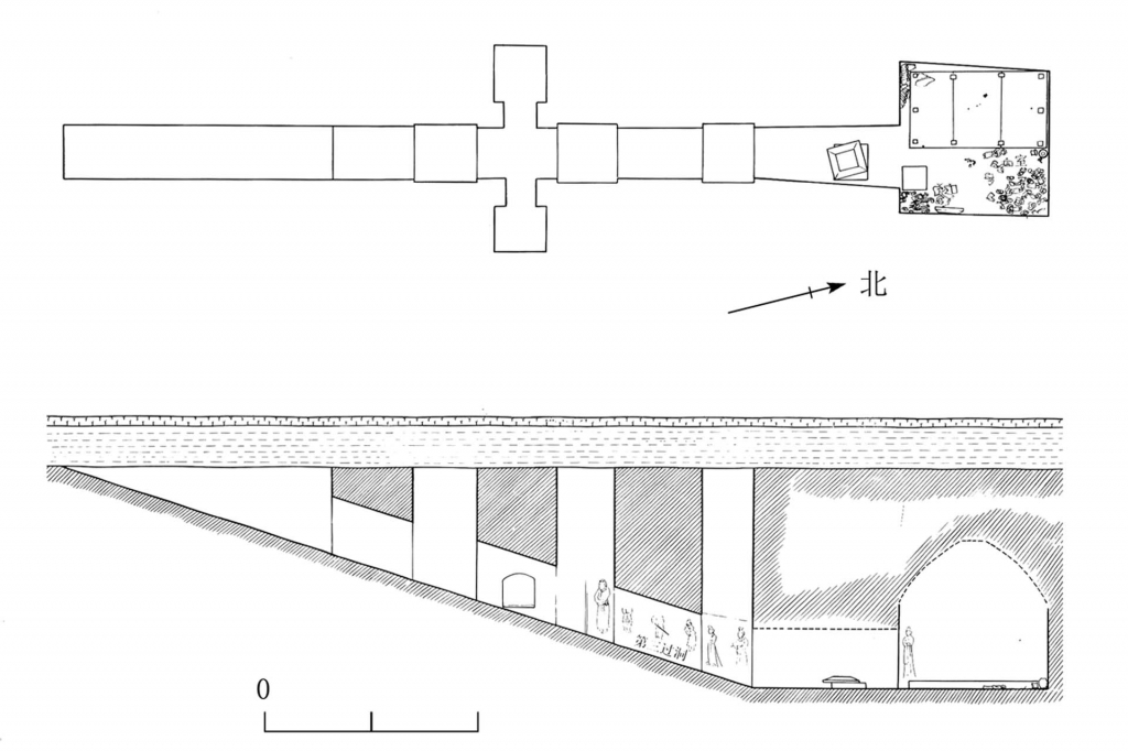 考古發現,推土機推掉了墓道的一部分,東壁上的一個壁龕也被破壞,被搶的陶俑即出自此龕,墓葬再往北的部分未被破壞。