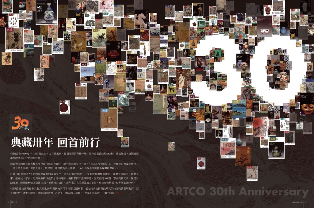 《典藏》身為臺灣社會及藝文產業30年發展的同行者與密切觀察者,感念諸多支持與鼓勵我們的師長讀者朋友們。回首來時路,邁步向前行,為廣大的您們,許諾下一階段的心感動,《典藏》與眾共好,攜手同行。