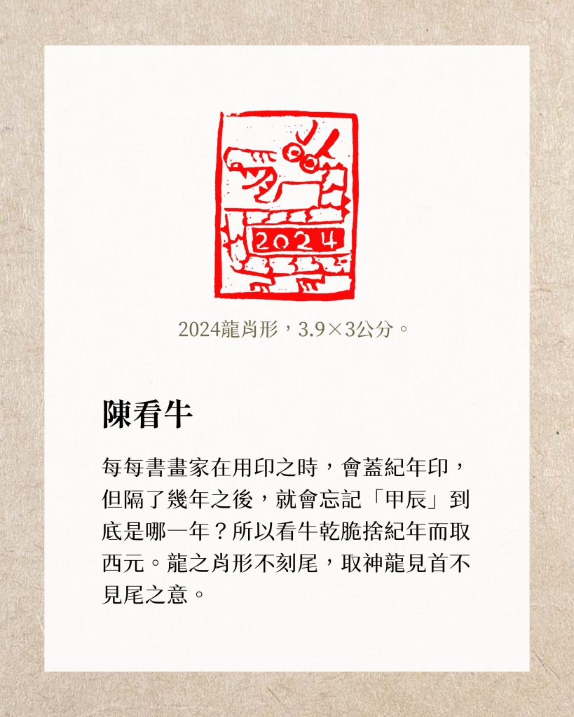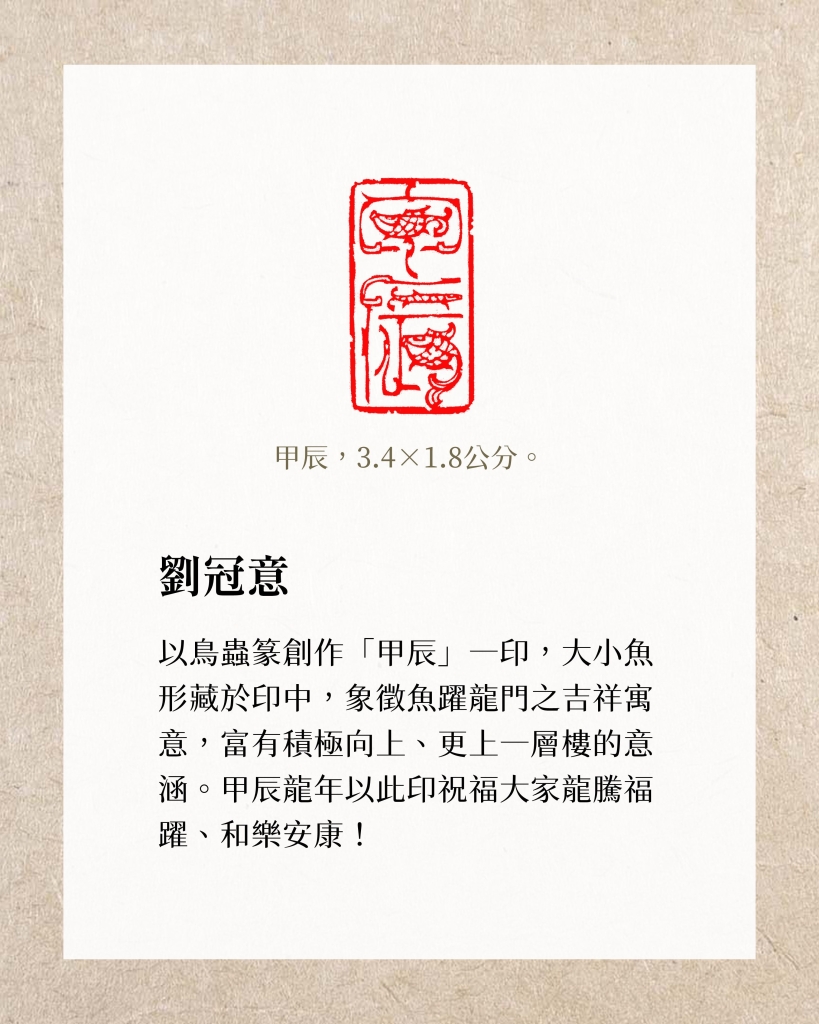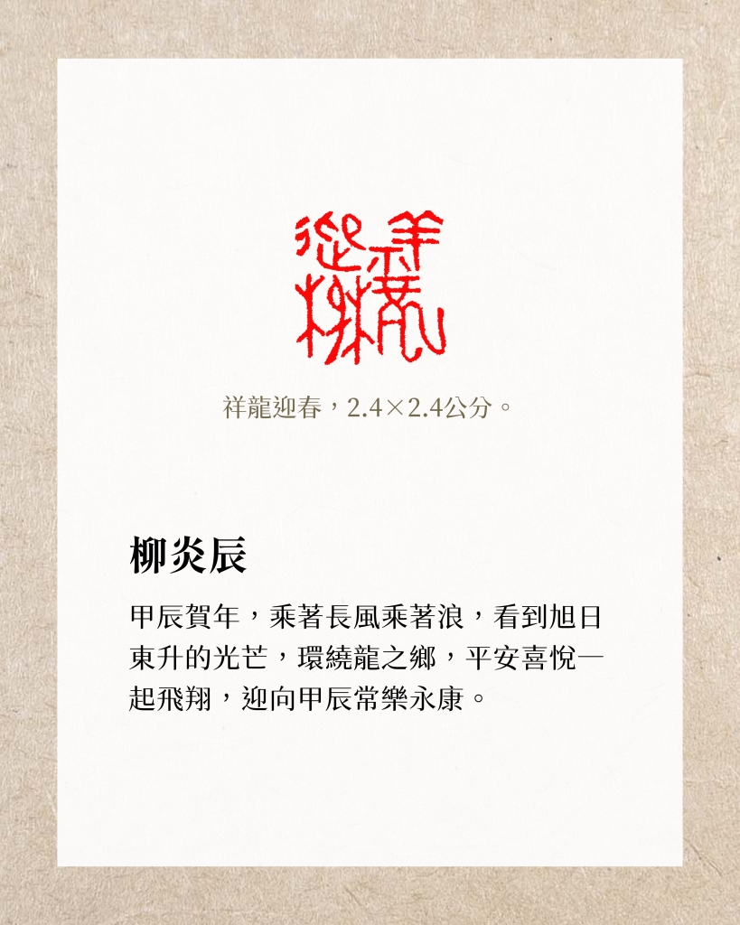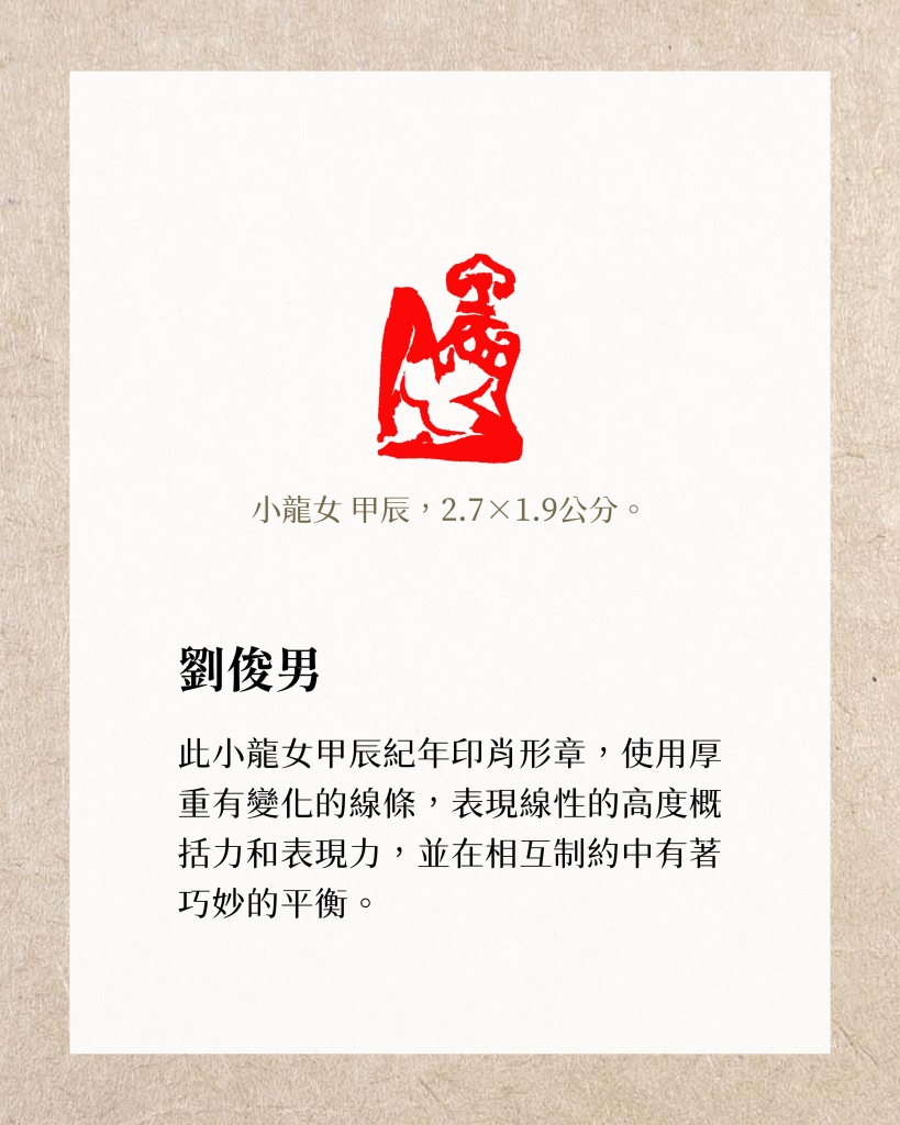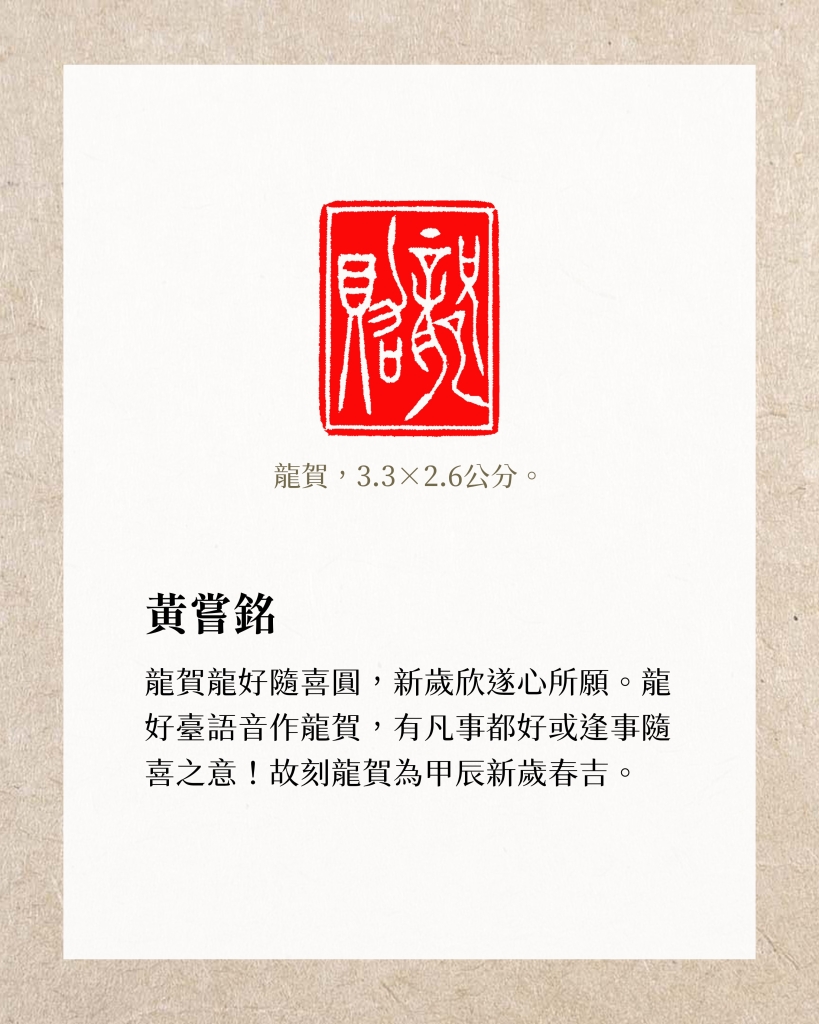 本特輯邀集印友們,以「甲辰」紀年印或「龍」肖生印為主題,無分老中青世代,以齒齡為排序,自八十霞翁至未及而立之年的年輕世代,共44位印人共襄盛舉,並輔以短文或述創作理念、新年寄語、感懷祝賀等,真誠滿懷,與眾和樂歡喜,「好玩,好看,又有藝術性」,共度美好新年,龍賀,龍好運。(文/藍玉琦)
