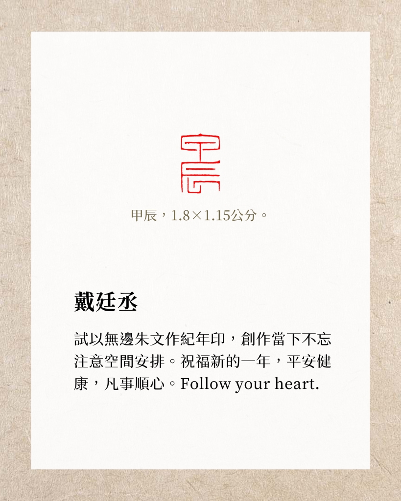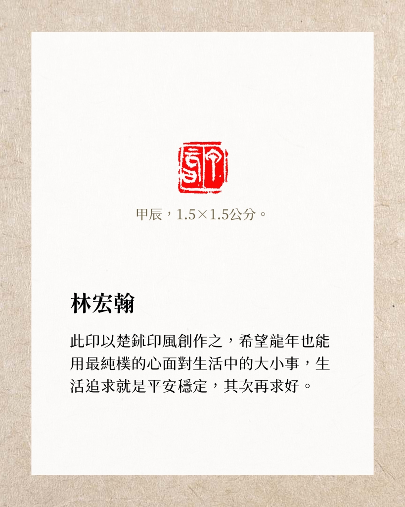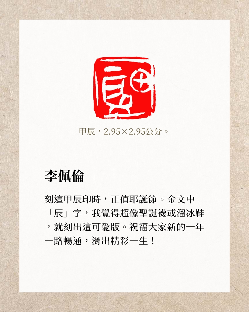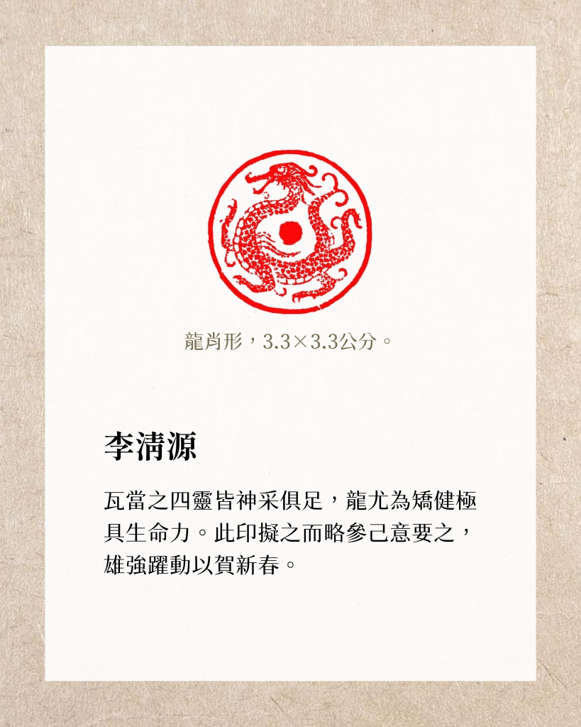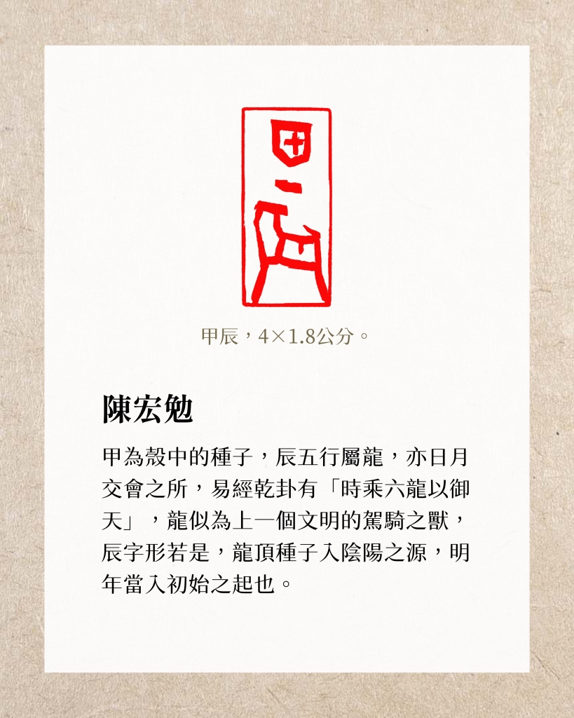 本特輯邀集印友們,以「甲辰」紀年印或「龍」肖生印為主題,無分老中青世代,以齒齡為排序,自八十霞翁至未及而立之年的年輕世代,共44位印人共襄盛舉,並輔以短文或述創作理念、新年寄語、感懷祝賀等,真誠滿懷,與眾和樂歡喜,「好玩,好看,又有藝術性」,共度美好新年,龍賀,龍好運。(文/藍玉琦)