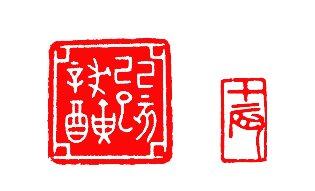 再來說一方與「甲辰」相關的紀年印。張大千可謂近現代書畫大師中干支紀年印使用最多的畫家。大千出生於清光緒二十五年農曆四月初一日酉時,依天干地支計算可得為「己亥己巳戊寅辛酉」四柱八字印,大千將自己出生之年月日時直接以干支明確刻在印中可說是創舉。除最常見以干支紀年來表示出生之外,大千用過多方干支紀年與肖形印,這些印鈐在當年創作的書畫中以為紀年。大千繪畫除署年款外,常將該年之干支紀年印鈐於署年款之下,或署年款處數鈐上干支紀年印,或作「引首章」鈐在無年款作品中,以作紀年,引人注目。據楊詩雲《張大千印說》研究,大千正式使用干支紀年印是從1964年至1984年,也就是在他66歲至逝世前,共使用過近40餘方干支紀年印,在這期間,1966丙午、1969己酉、1970庚戌三年中似乎少見或未曾用過。而大千正式使用干支紀年印該年正是「甲辰」。於今觀之,吳昌碩1844年出生、1904年自刻「雄甲辰」印;大千1964年起作品用干支紀年印,至2024年本刊篆刻「甲辰」紀年印特輯,每一篆刻故事均間隔一甲子60年,這絕對是值得紀錄的意義時刻。