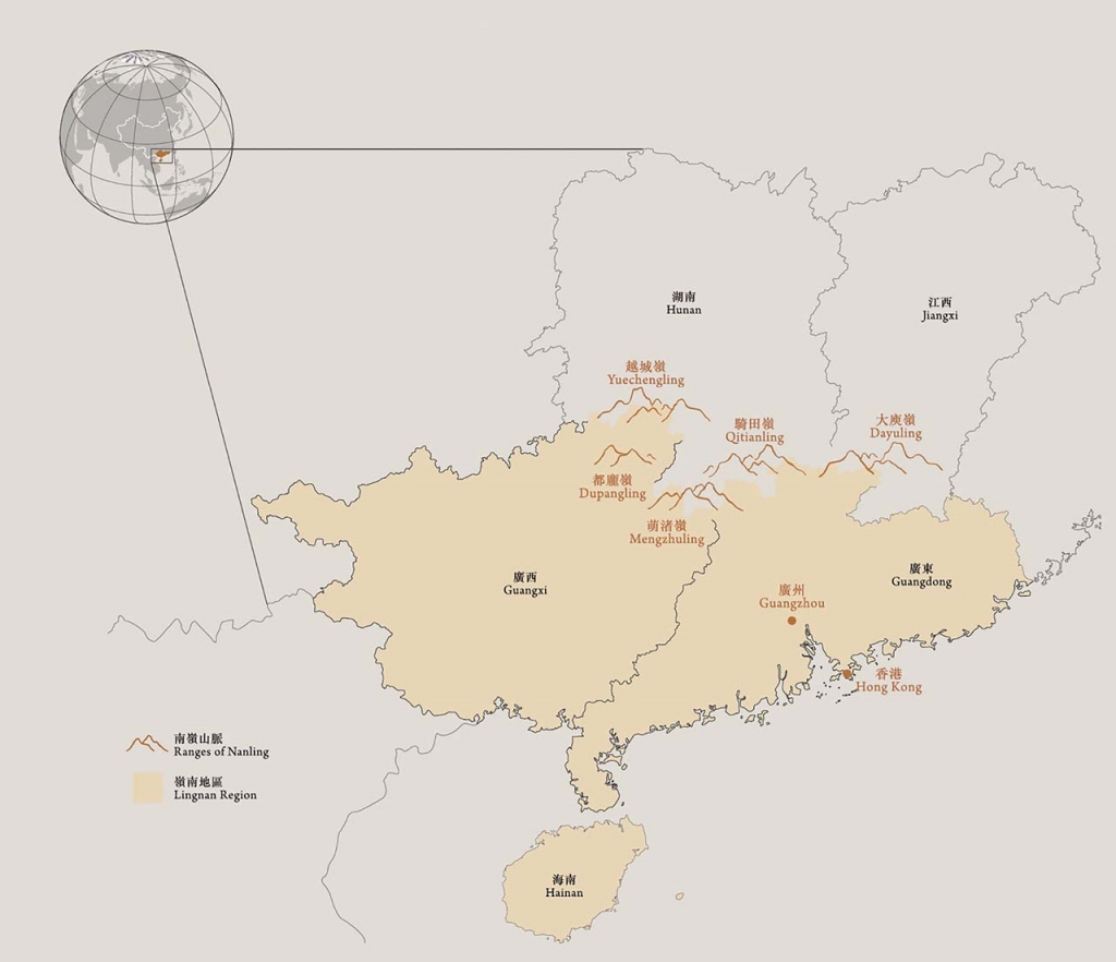 言及「嶺南」一詞,不難聯想到「嶺南畫派」中西並舉的折衷之筆,以革新思想雄據中國南方繪畫史的要席。究其字義,「嶺南」其實是「南嶺以南」的地理指稱,多泛指今廣東、廣西、海南以及港澳地區(圖1)。早於「嶺南畫派」冒起前,廣東繪畫在明代已嶄露頭角,入清後更是名家輩出,百花齊放;民國以還,在「二高一陳」之外,躋身傳統而尤有建樹的粵籍畫家亦不乏其人。「南嶺之南─館藏廣東繪畫選」透過逾80組香港藝術館的館藏作品,重新梳理從明代至20世紀廣東繪畫與時局緊扣的發展,在傳統與創新、本土與外來的大命題下,撰寫一部以嶺南地區繪畫為脈絡的大觀。