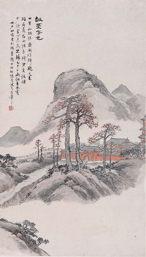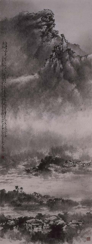 戰後,廣東畫人南移漸頻,他們將廣東的文藝風氣移植香江,承接了與廣東藝壇一脈相連的書畫活動。傳統派畫家在香港成立「國畫研究會香港分會」,延續傳統畫學;「嶺南畫派」的傳人亦先後流寓香江,為後繼發展扎下根基。初抵香港的廣東畫家多活躍於探索本地風光,作品常以香港山水入畫。黃般若(1901-1968)積極涉足本地遠足旅遊,寫生創作了〈夜攀鳳凰〉、〈紅香爐峰〉等旅行寫生作品。其〈木屋之火〉(圖14)更是其晚年代表作,黃般若以民生實況入畫,描繪了1950年代木屋區遭歷火劫,生靈塗炭之象。他以西畫構圖的層次打破了傳統的山水的格局,表現出濃煙蔽天的災厄瞬間,也反映出傳統派畫家的創新突破。