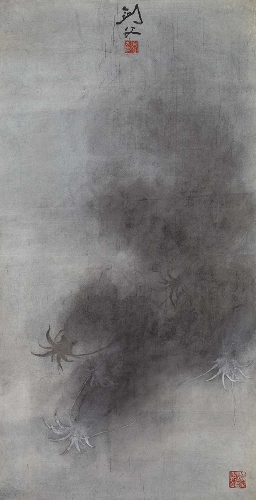 廣東是近代西學啟蒙的重地,「二高一陳」曾先後負笈日本,深受東洋畫風和西方潮流熏陶。高劍父更積極提倡國畫改革,認為任何事物皆可入畫,筆下作品題材廣泛,立意新穎。其〈烏賊〉(圖9)便借鑑了日本畫的染墨技法,呈現墨團在水中滲化淡開的自然物理,充分掌握物象的光影明暗、空間氣氛,突破了傳統中國畫的藩籬。高氏巧妙地以水墨刻劃烏賊借墨遁隱的狀態,可見其對烏賊動作、形貌的觀察入微,貫徹「二居」以來的寫生傳統。