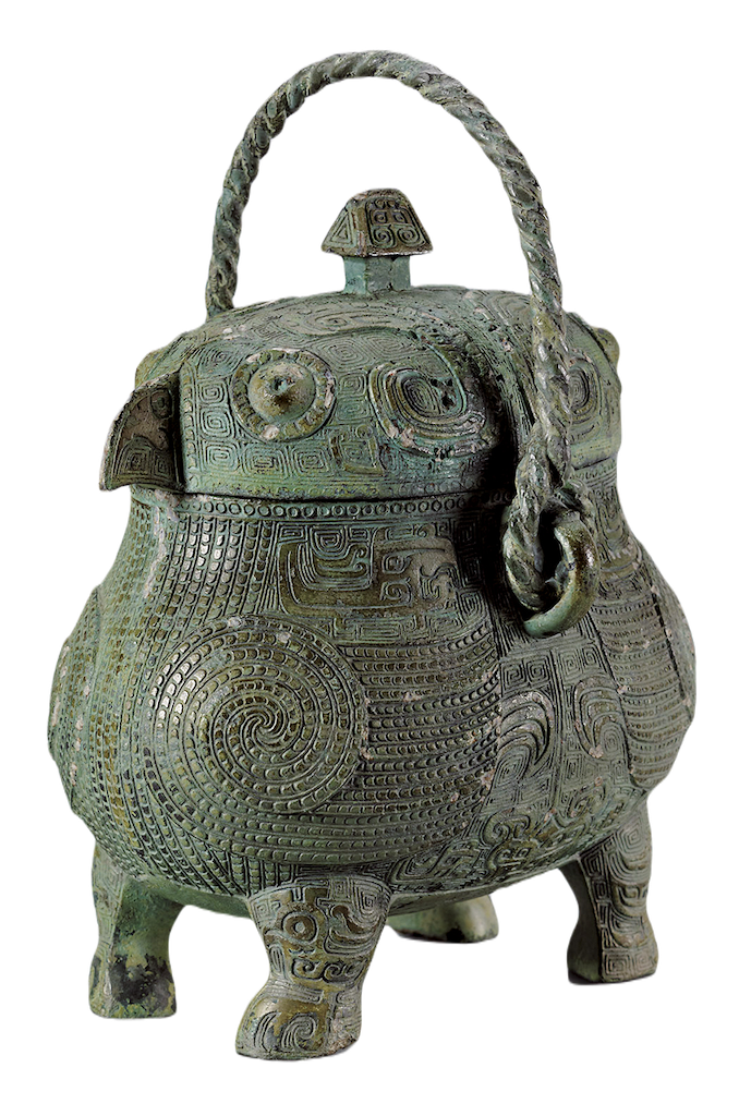 酒與人類的歷史息息相關。中國殷商至周代,君王通過祭祀祖先和承受天命以行統治,在當時祭祀中必不可少的,就是酒。這些供奉神和祖先的酒,據說是以黑黍釀造並以鬱金草增添香味的「鬯」,以其香氣召引出神靈。至於被用於祭祀的青銅器,則有裝酒用的盛酒器、熱酒用的溫酒器、添注酒水的注酒器,以及喝酒用的飲酒器等各式酒器留存下來。這些青銅器上,不僅有表現獸面的饕餮紋,還能見到據信往返天地之間的龍、鳥,以及象、龜等種種生物。〈戈卣〉(圖1)為盛酒器,被製作成似鵂(即鵂鶹,貓頭鷹的別稱)的鴟鴞外型。其造型布滿細緻花紋,讓人感受到其中所蘊藏的神祕力量。
