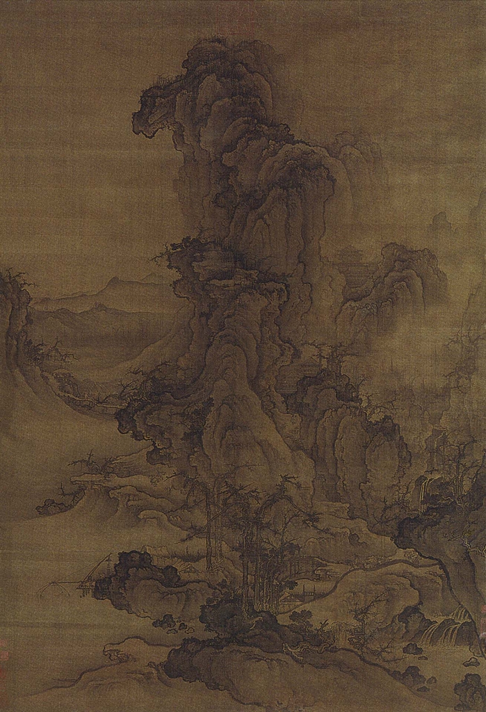 據郭思所載:「先子(郭熙)少從道家之學。」道家思想源於自然所體悟的恬淡虚静、幽遠深邃,對應著「山無明晦則謂之無日影,山無隱見則謂之無煙靄」,那畫中在光影起落之際,自然煙嵐的離合、色彩聚散的交錯,與莫明未知的顯晦變換,不僅傳達出他自身的情意投射,也彷如詩句般緩緩咀嚼著人生況味。