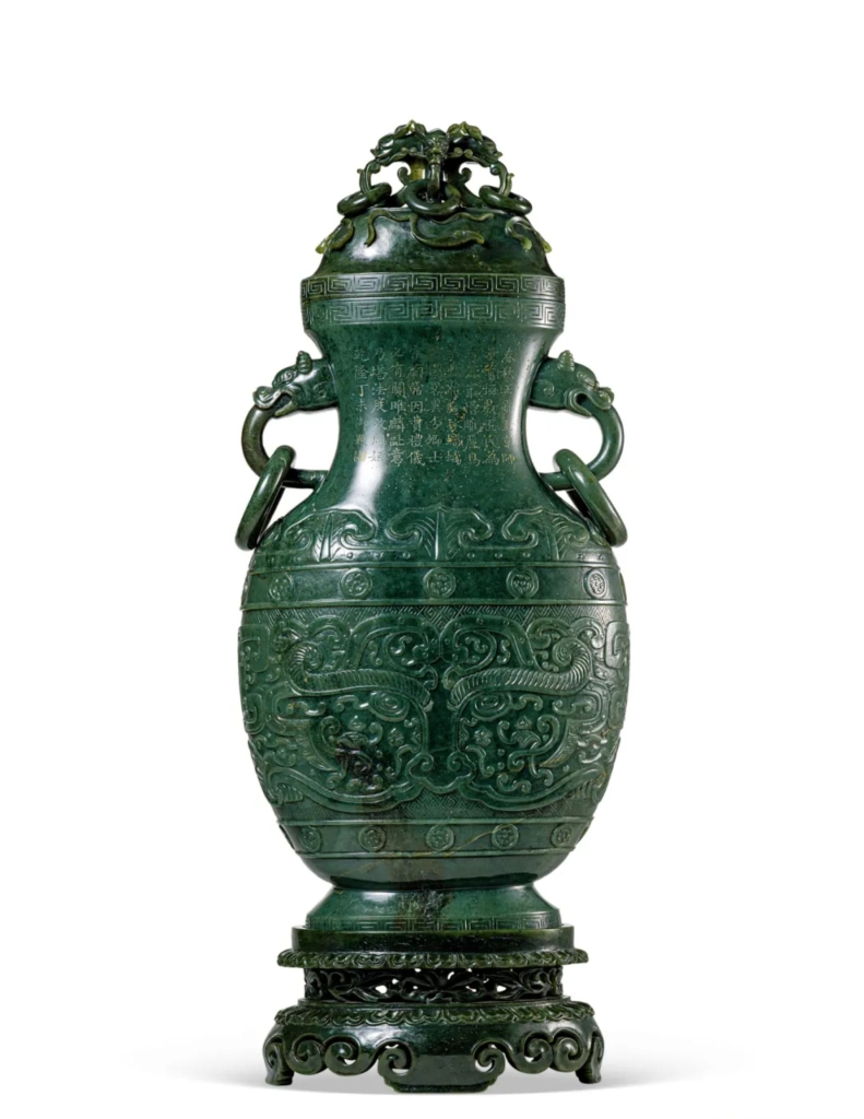 《玉立人》憑借溫潤的玉質與精湛的工藝在拍場上引發一波叫價,藏家們爭相舉牌,終以522萬港元成交,超出估價3倍有餘。玉器專場「玄禮四方─中國古代玉器」,總成交額3144萬港元,封面拍品清乾隆《碧玉御題詩獸面紋活環大蓋瓶》曾為恭王府恭親王及山中商會舊藏,玉質細膩,整器風格古雅,活環設計靈動,御題詩更為此器增添了歷史與文化價值。本品以580萬港元起拍,最終以822萬3000港元成交。古玉及玉器的成績突出,反映該類項在藝術市場獨特的地位與魅力。