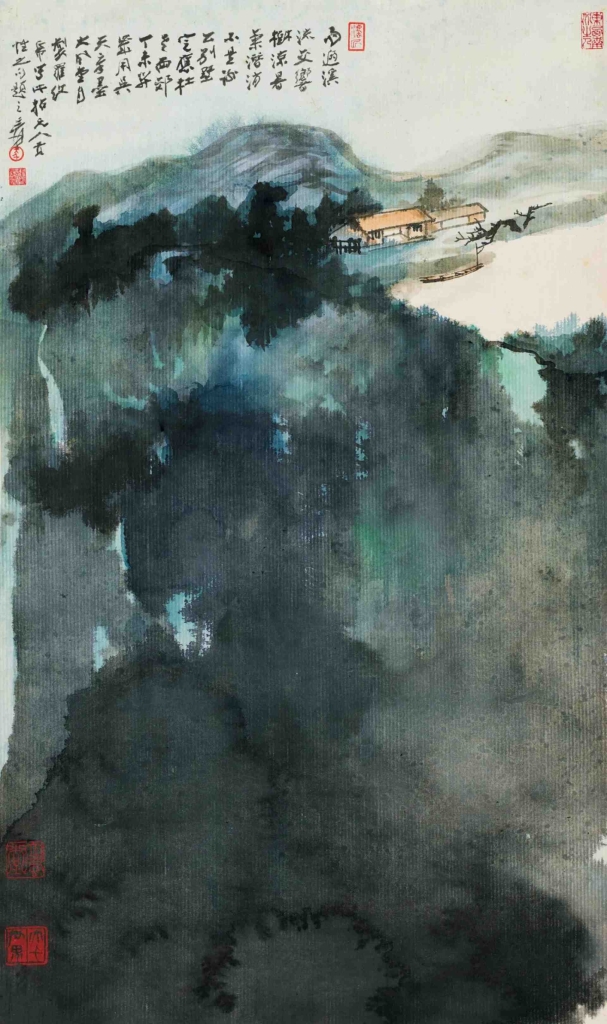 近現代書畫部分封面拍品——張大千潑墨潑彩創作高峰期之佳作《溪山雨過》,從50萬港元起拍,場內、電話委託和網路買家以志在必得之勢,果斷出價,報價迅速攀升,最終取得372萬港元的成交佳績。