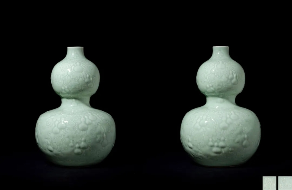 4月7日上拍的「映水藏山─宮廷藝術與尚古美學」彙聚本地與海外私人珍藏,專場總成交額一舉突破8013萬港元。本場焦點當屬一對清乾隆《粉青釉「千秋萬代」葫蘆瓶》,造型優雅,線條流暢,粉青釉色溫潤如玉,其以超凡魅力與珍稀性,最終以4635萬港元高價成交,毫無懸念地榮登本季拍賣魁首之位。其高價成交也充分彰顯了藝術品市場對頂級瓷器的高度認可與熱烈追捧 。