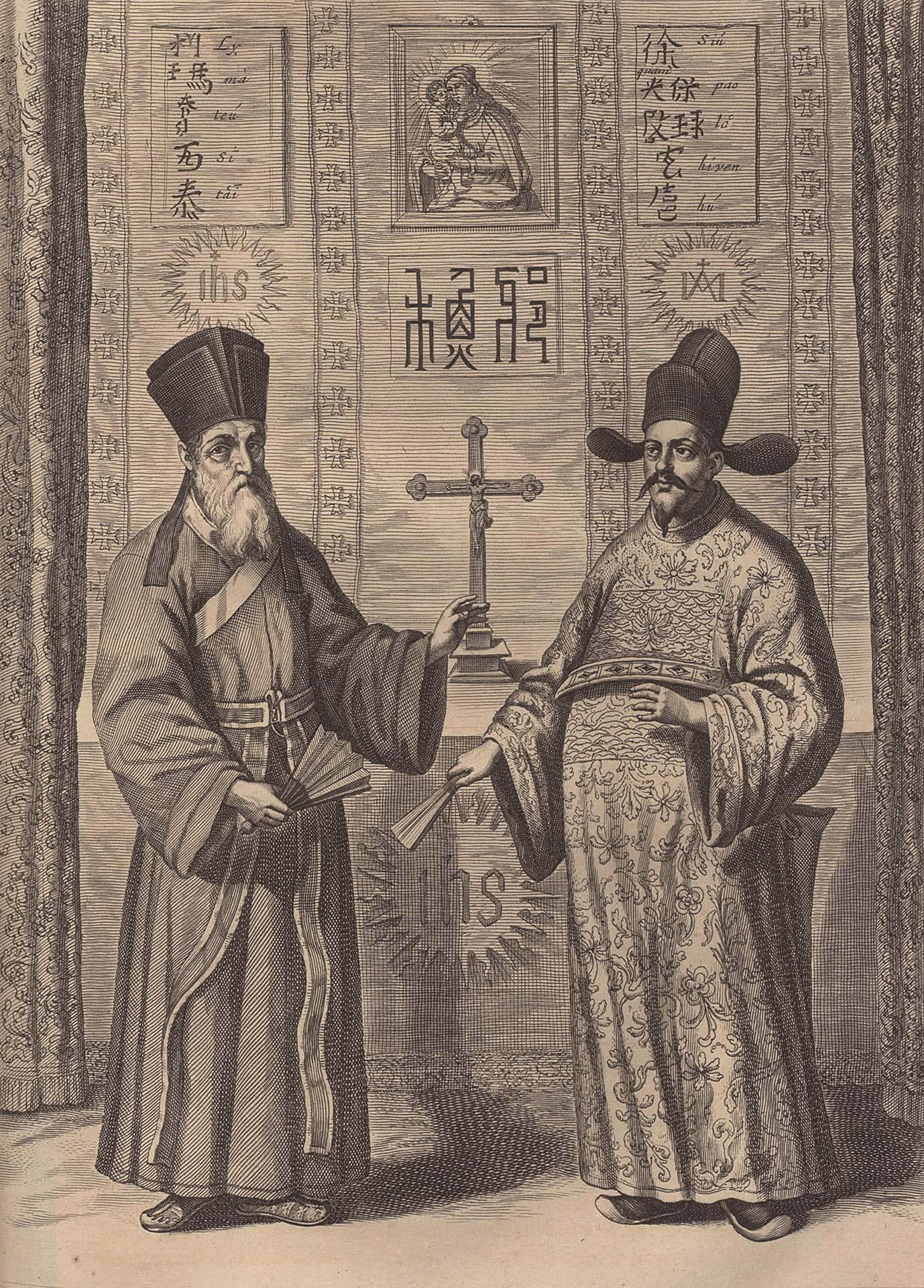 明代萬曆十年(1582),義大利籍的利瑪竇抵達澳門,後來又陸續在廣東肇慶、韶州,江西南昌、陪都南京、首都北京等地待了近30年。他深目高鼻、溫文儒雅,不但有神學、哲學素養,而且熟悉天算,通拉丁文、希臘文、西班牙語、葡萄牙語;為了在中國傳教,他又學會中文。他先是薙去鬚髮、作僧人打扮,還建了一座「僊花寺」,以致中國官民還以為他是來自天竺的和尚;後來他知道中國社會更尊重儒士,於是留髮蓄鬚、改著儒服。
