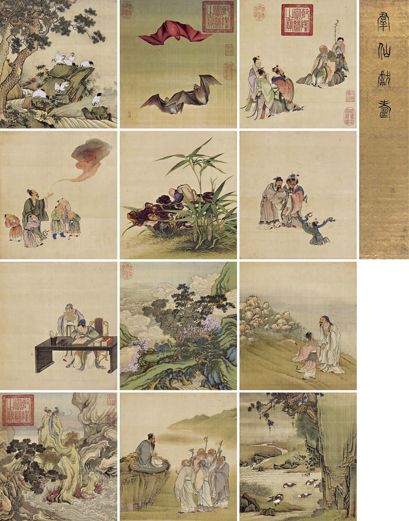 8. 清宮廷畫家合繪 《壽意圖冊》頁(十二開)