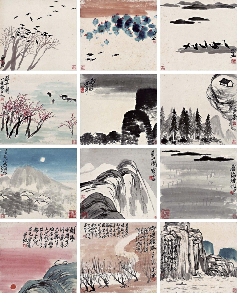 齊白石此套山水冊,作於1931年秋,題材大體源於其遠遊印象和家鄉記憶,畫家自署標題者八幅:〈朝陽〉、〈放牛圖〉、〈蒼海煙帆〉、〈陽羨山水〉、〈月明人靜時候〉、〈雨後〉、〈荒山殘雪、〈柳浦秋晴〉。未署標題的四幅,根據內容可名為〈古木寒鴉〉、〈荷塘遊魚〉、〈沙渚鸕鷀〉、〈山上人家〉。