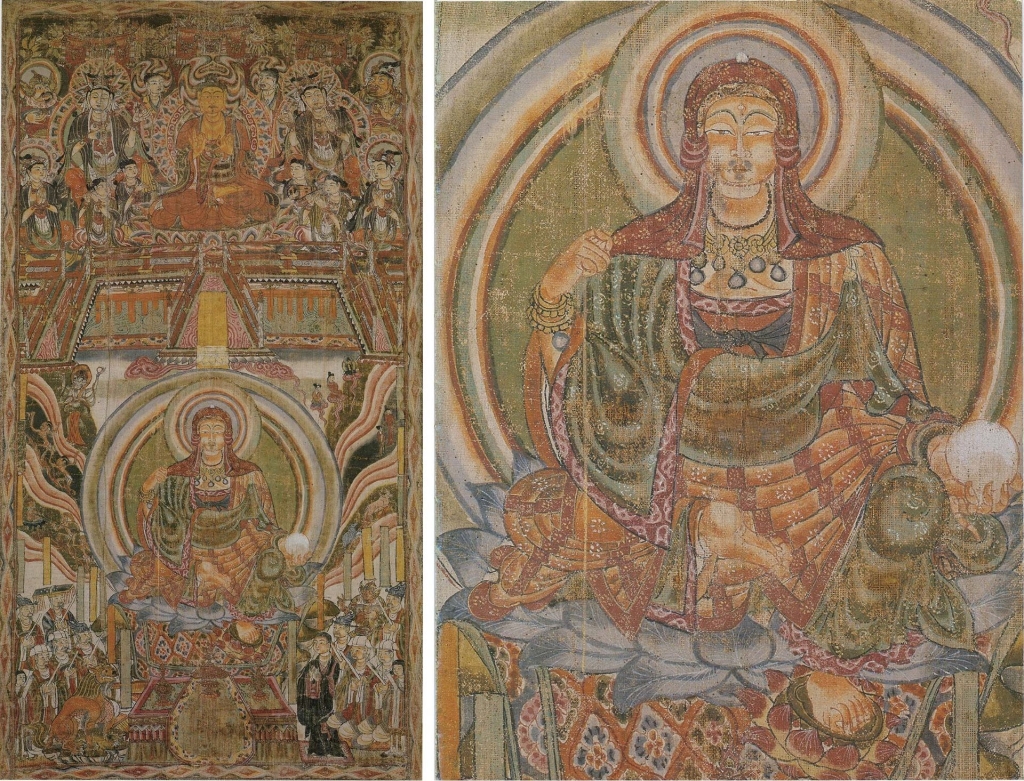 右 圖14 〈法藏MG.17664 披帽地藏圖〉披帽的型態。
